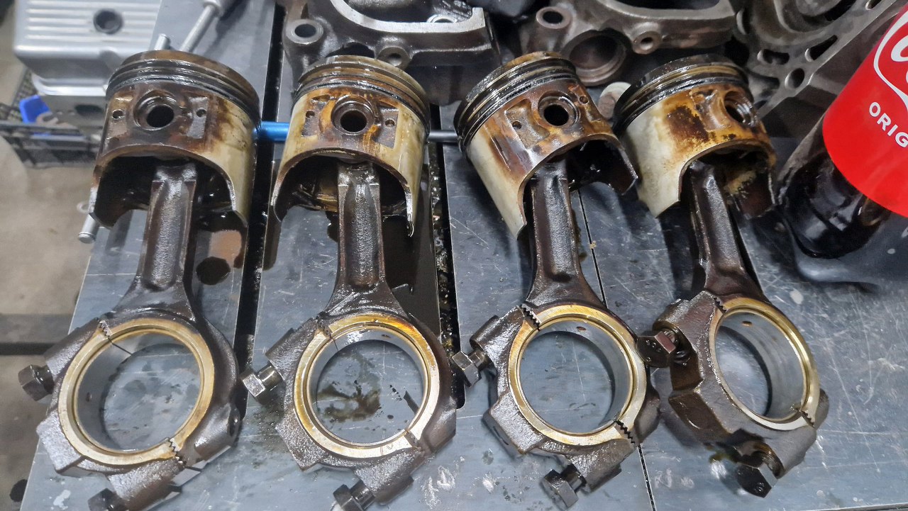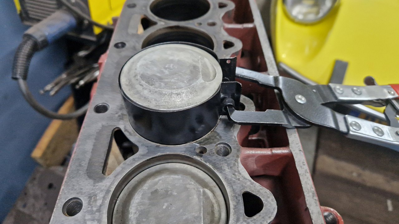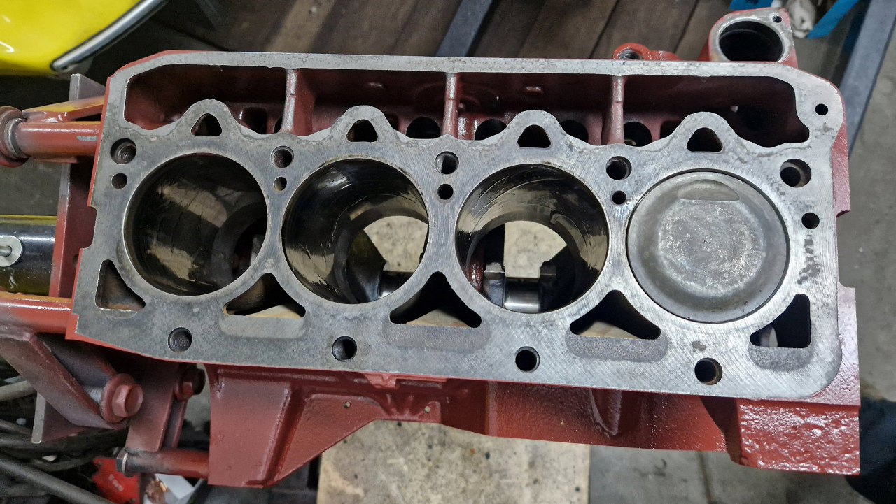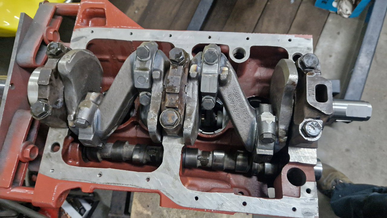 Niedługo potem miałem już wszystkie cztery tłoki wsunięte do bloku i skręcone z wałem.