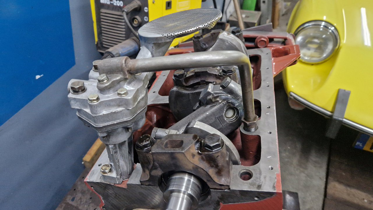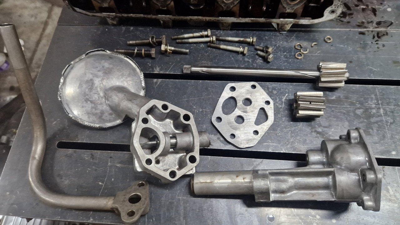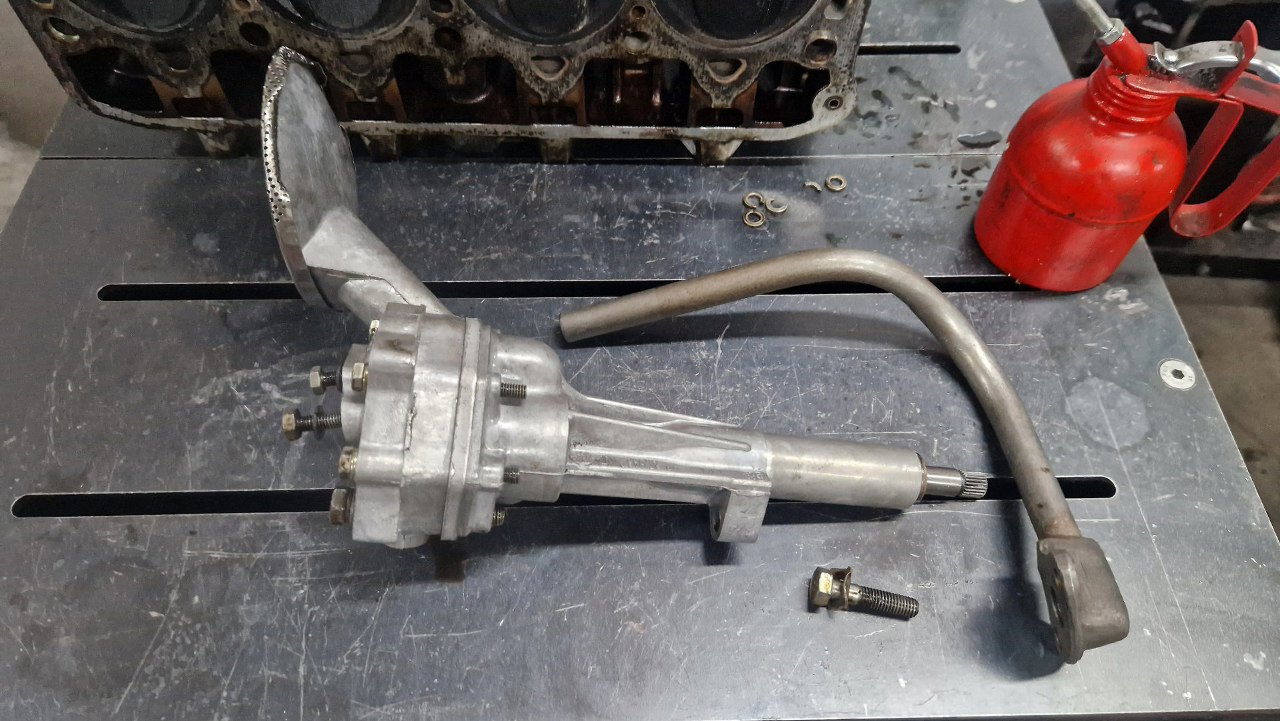 I skręciłem cały korpus pompy. Rurkę zasilającą magistralę olejową w bloku zostawiam na później.