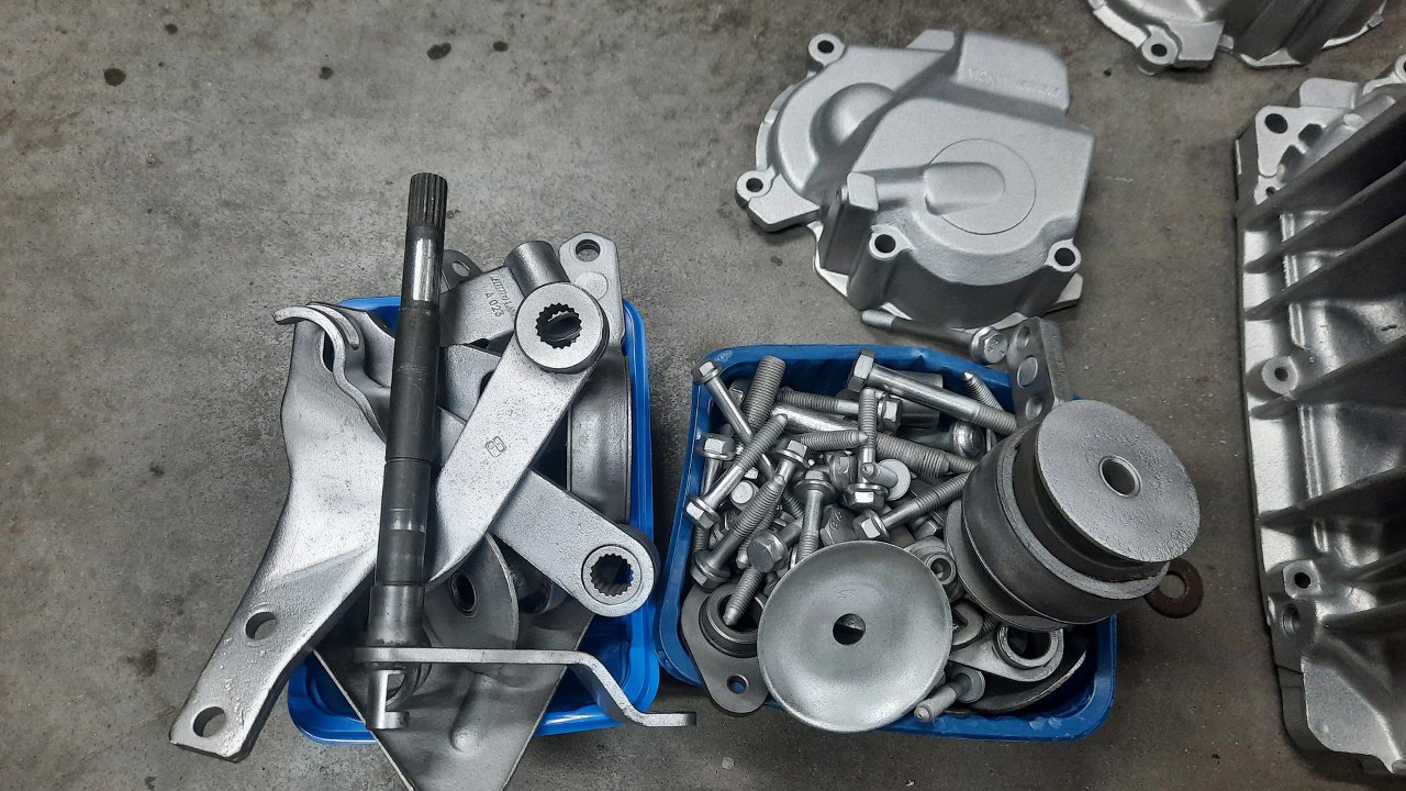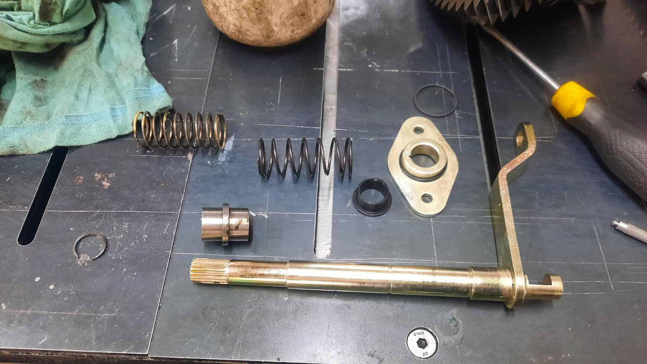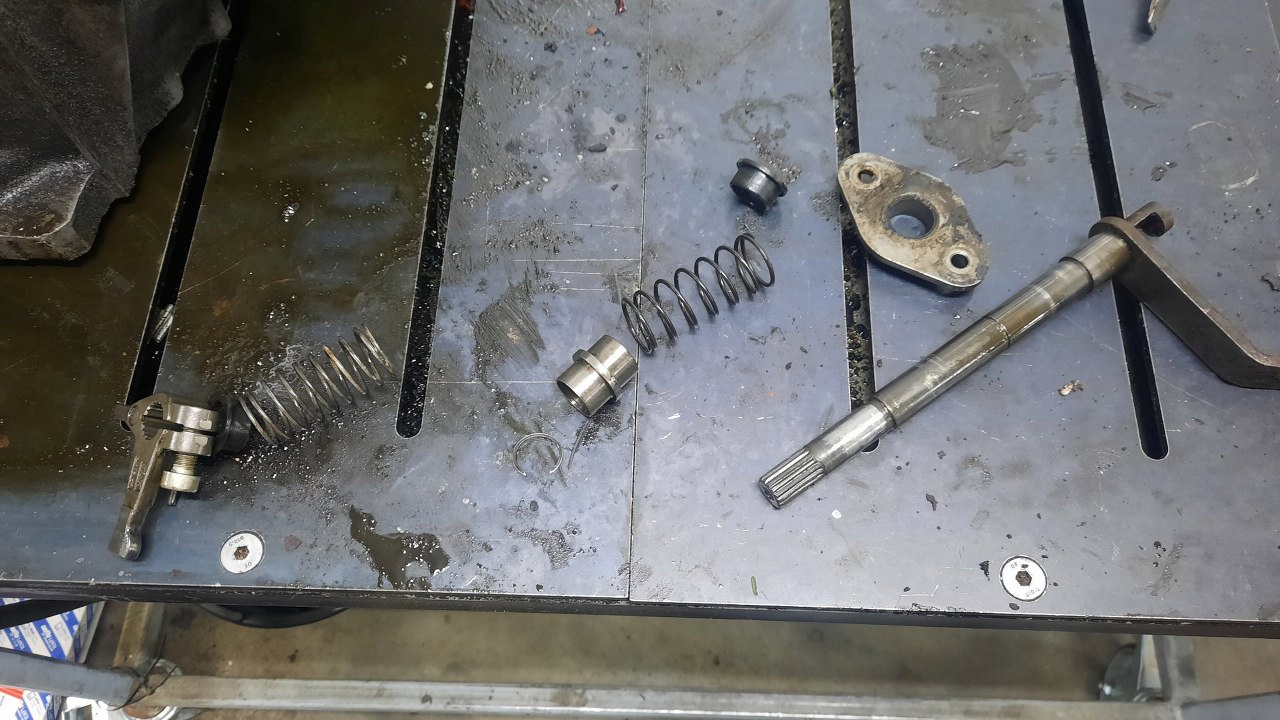 Wybierak biegów, rozłożony wcześniej do ocynkowania, też trzeba poskładać.