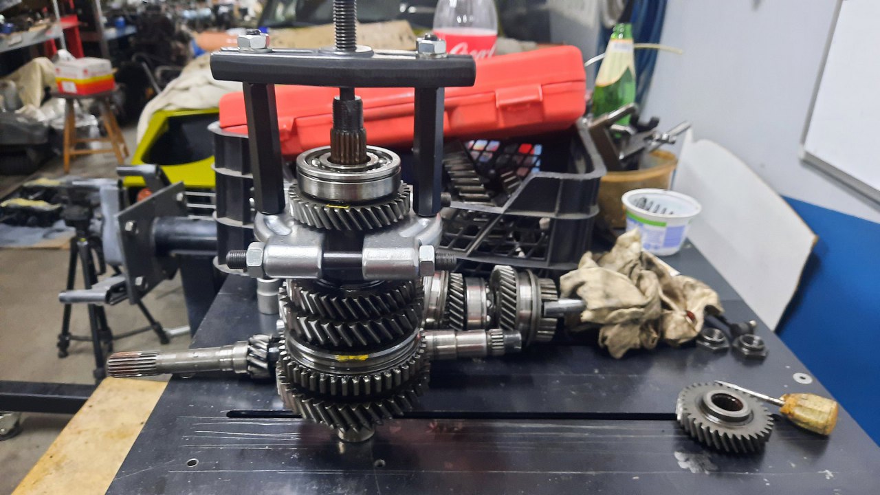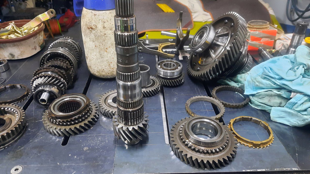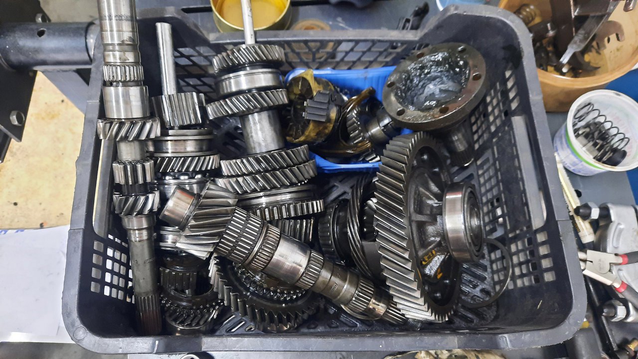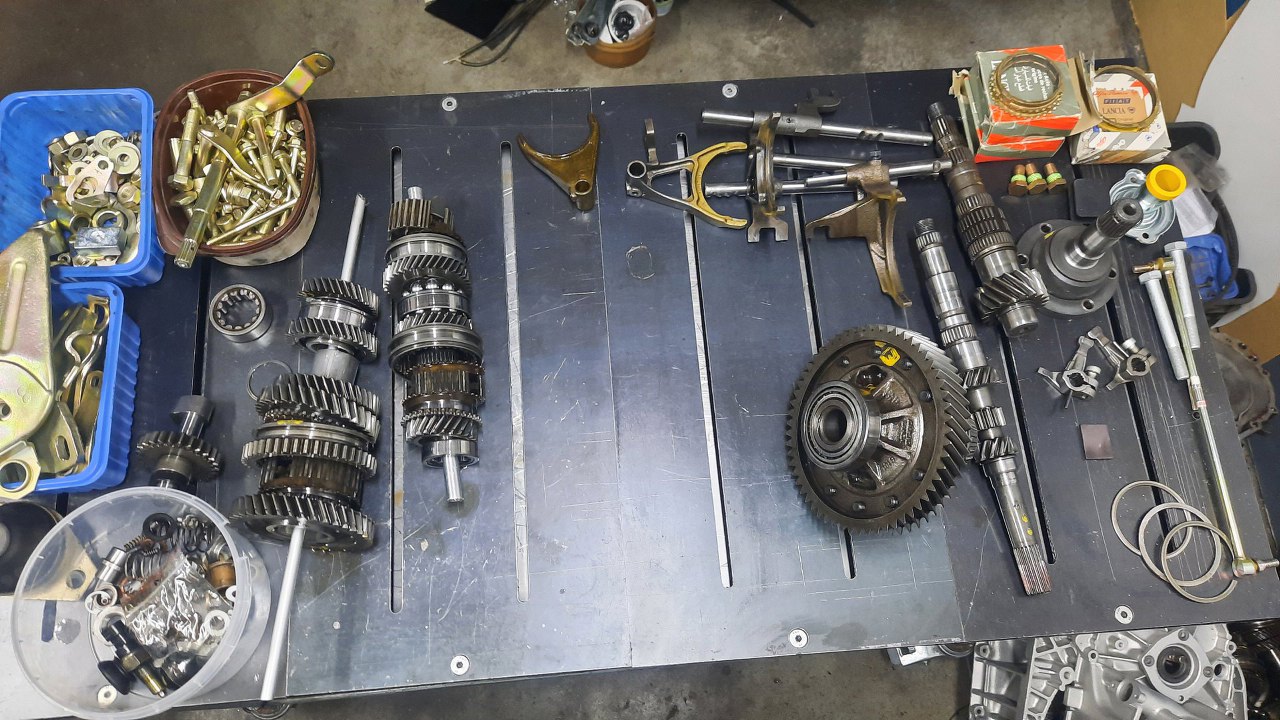 Rozłożyłem w ten sposób obie skrzynie, żeby porównać przełożenia, ale też żeby mieć w razie czego wybór dobrych części z obu skrzyń.