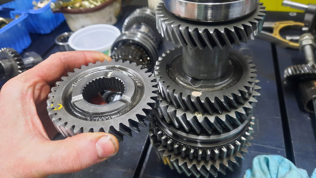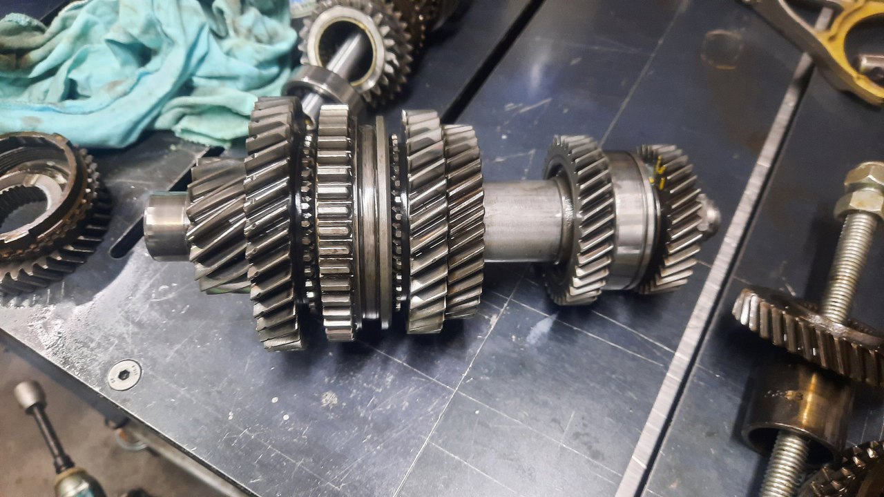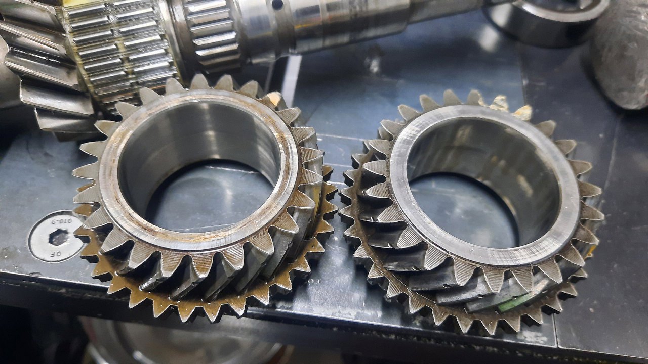 Następnie założyłem koła biegu drugiego, trzeciego i czwartego. Koło trzeciego biegu miało mocno wytarte zęby. Na szczęście mamy drugą skrzynię z dobrymi kołami i tym samym przełożeniem. Ważne, żeby zmienić parę kół z obu wałków.