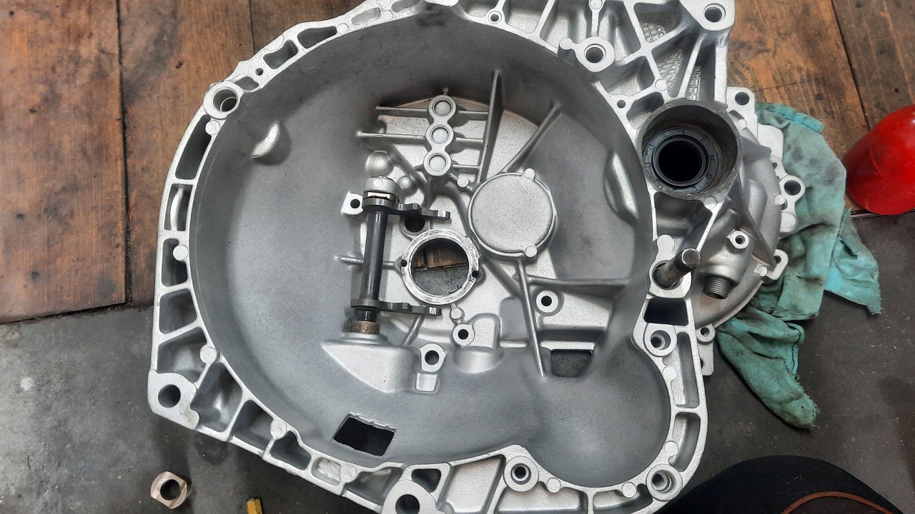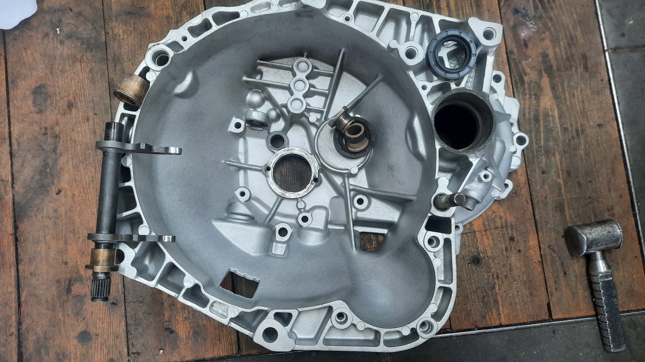 Z obudowy skrzyni wybiłem tulejki łożyskujące widełki, bo były tam tylko jako zaślepki do szkiełkowania. Lepsze tulejki wbiję teraz. Zainstaluję też uszczelniacz półosi.