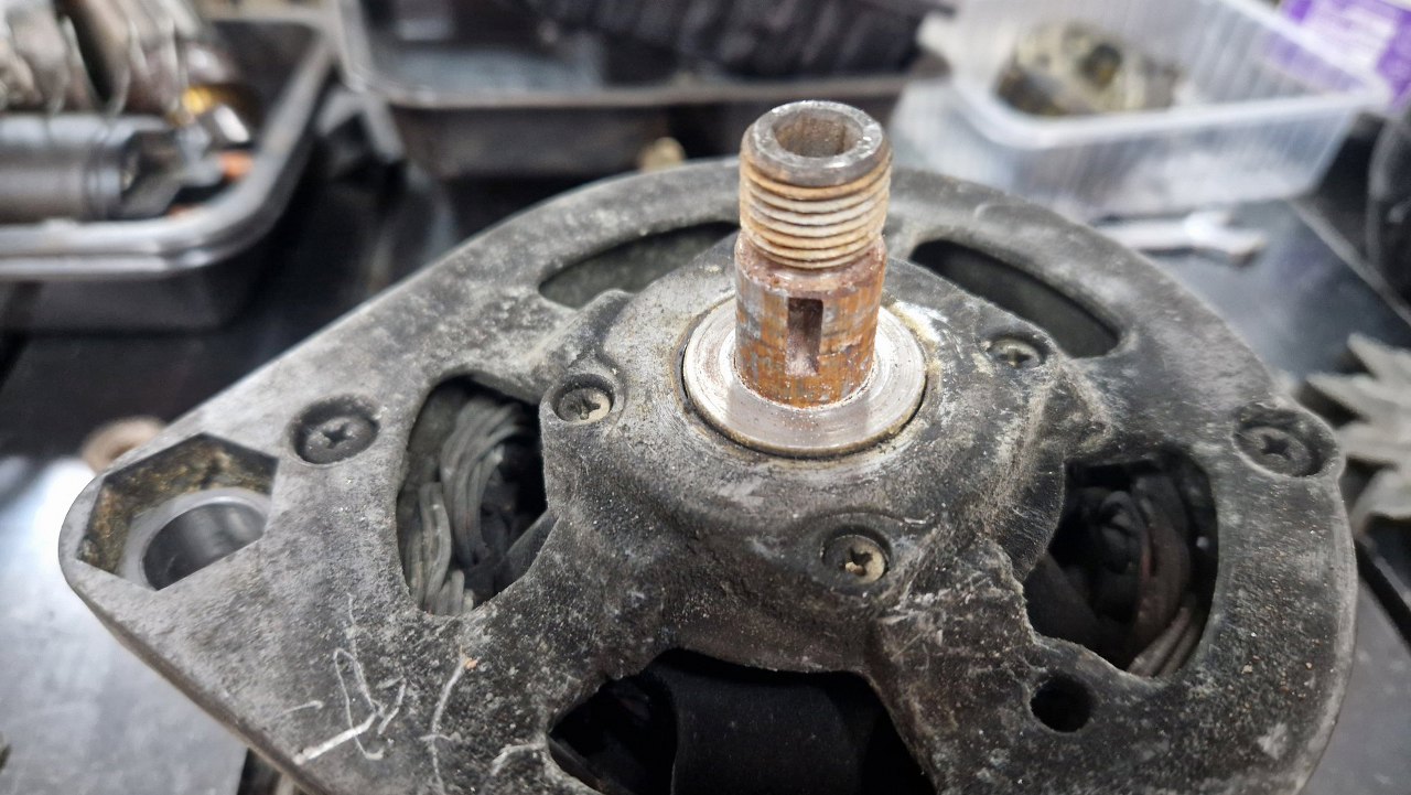 Tu się zdziwiłem, bo w ośce alternatora powinien być klin, ale w ogóle go tu nie było.