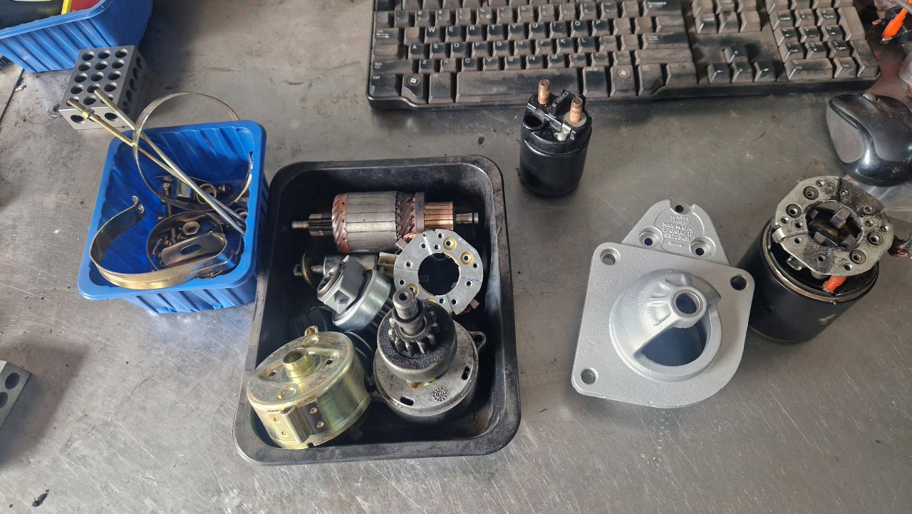 Pora na rozrusznik. Tu obudowa i przekaźnik powinny być ocynkowane, ale nie udało mi się wykręcić uzwojenia z obudowy, a przekaźnik jest jeszcze dobry, więc części te będą teraz czarne.