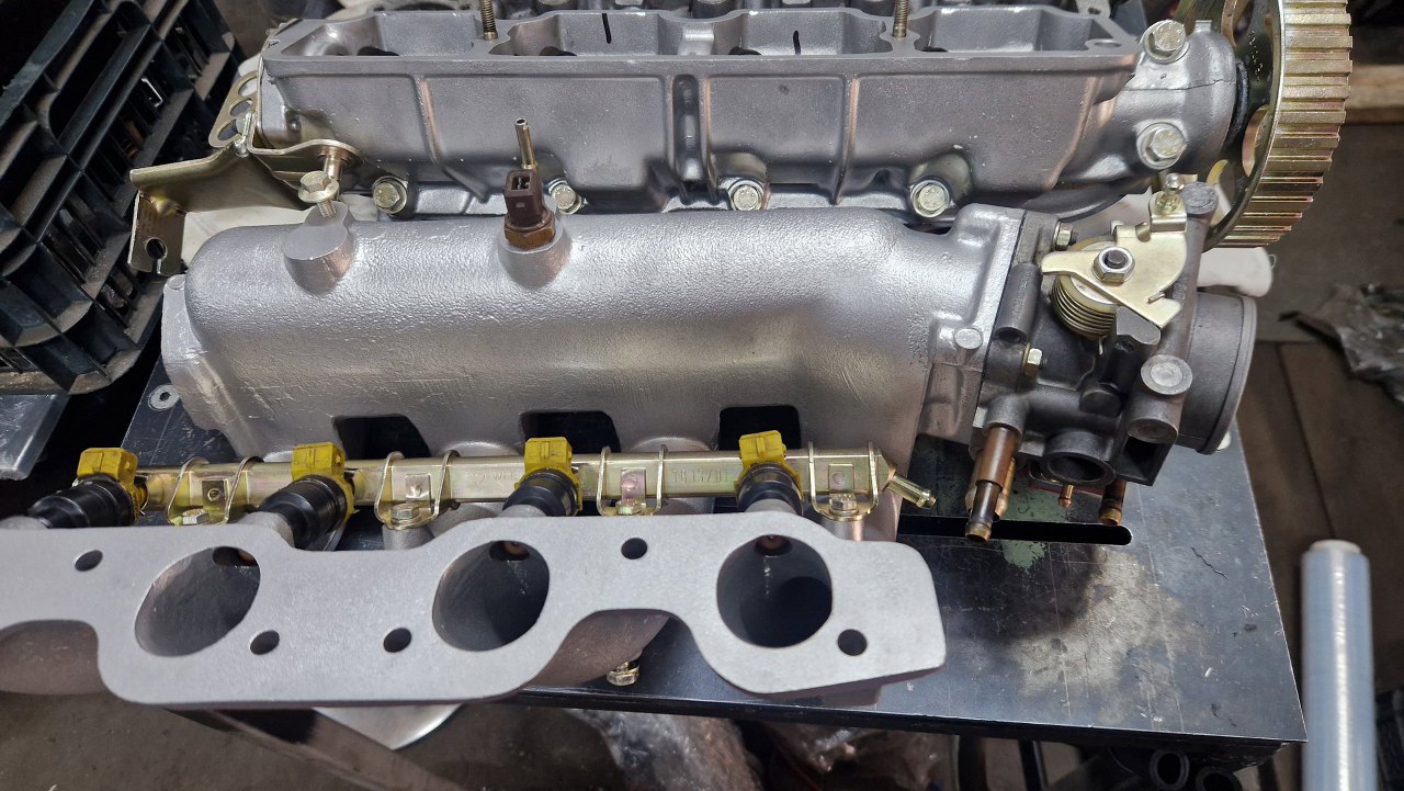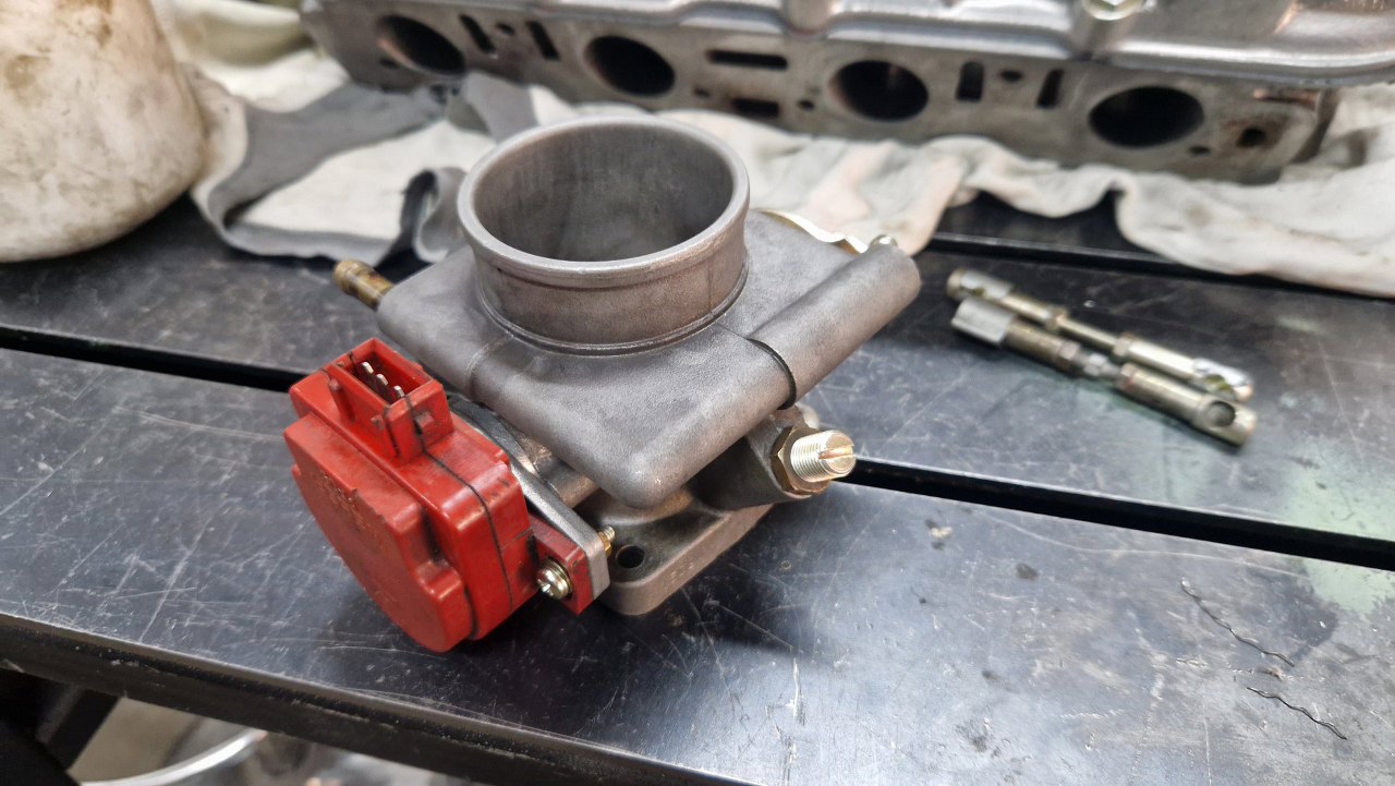 Teraz przykręciłem tylko te zdjęte stalowe części. Z drugiej strony będzie podstawka aluminiowa i czujnik położenia przepustnicy.