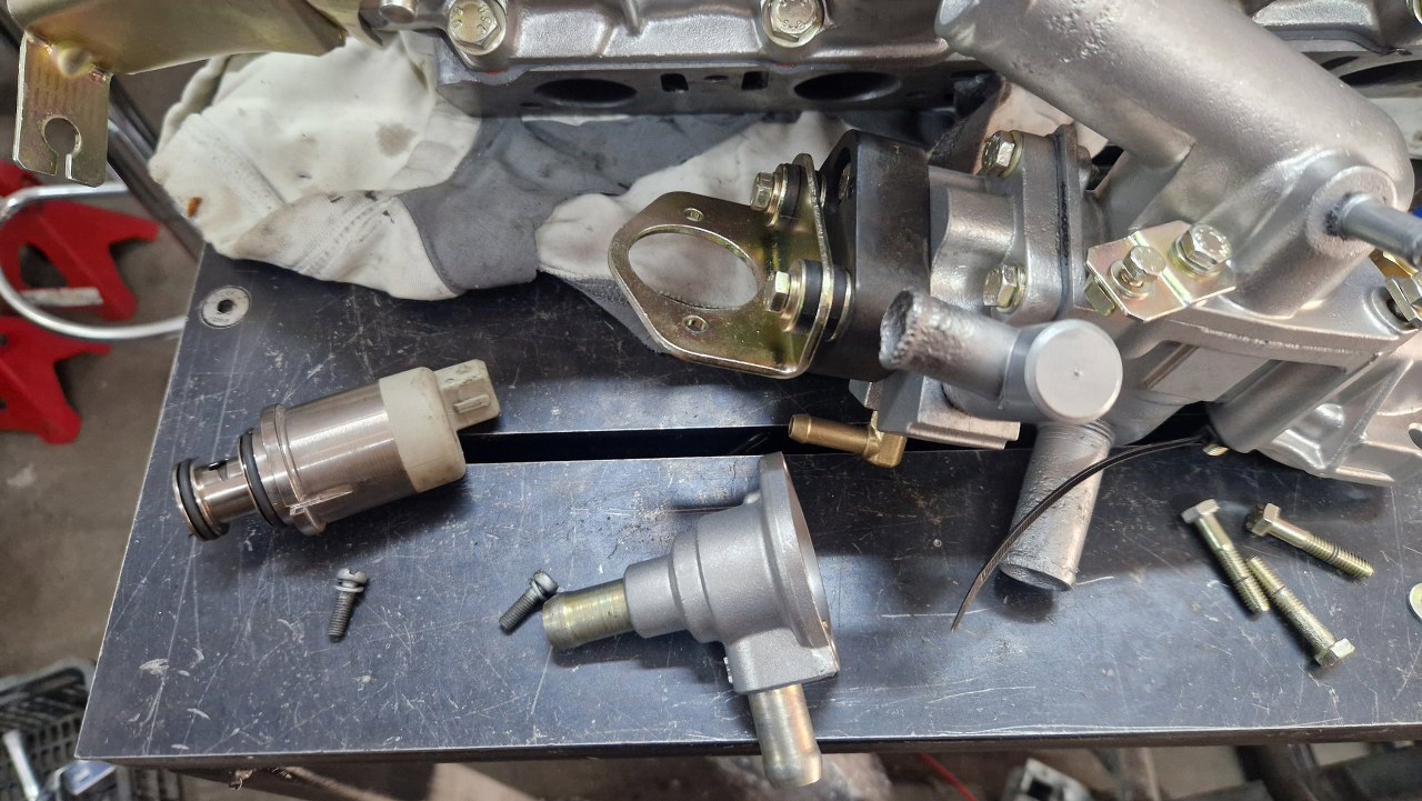 Grzebiąc w częściach znalazłem jeszcze coś takiego. Nie mam pojęcia co to, na wtrysku się nie znam, ale wygląda na zawór powietrza. Zobaczymy później, podczas podłączania. W każdym razie montowany jest do izolowanego uchwytu przy obudowie termostatu.