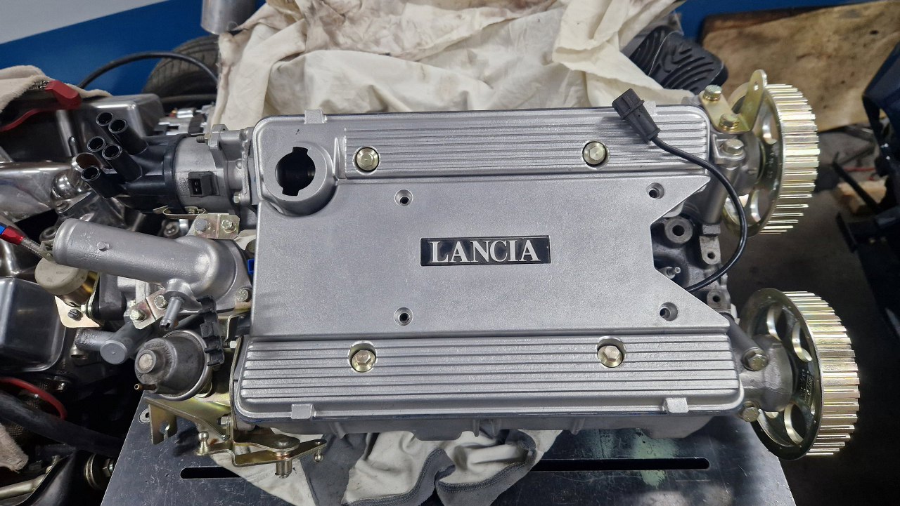 Musiałem poszukać zdjęć Lancii spod maski, żeby dojść do tego, czy tu ma być pokrywa z wlewem oleju czy bez.