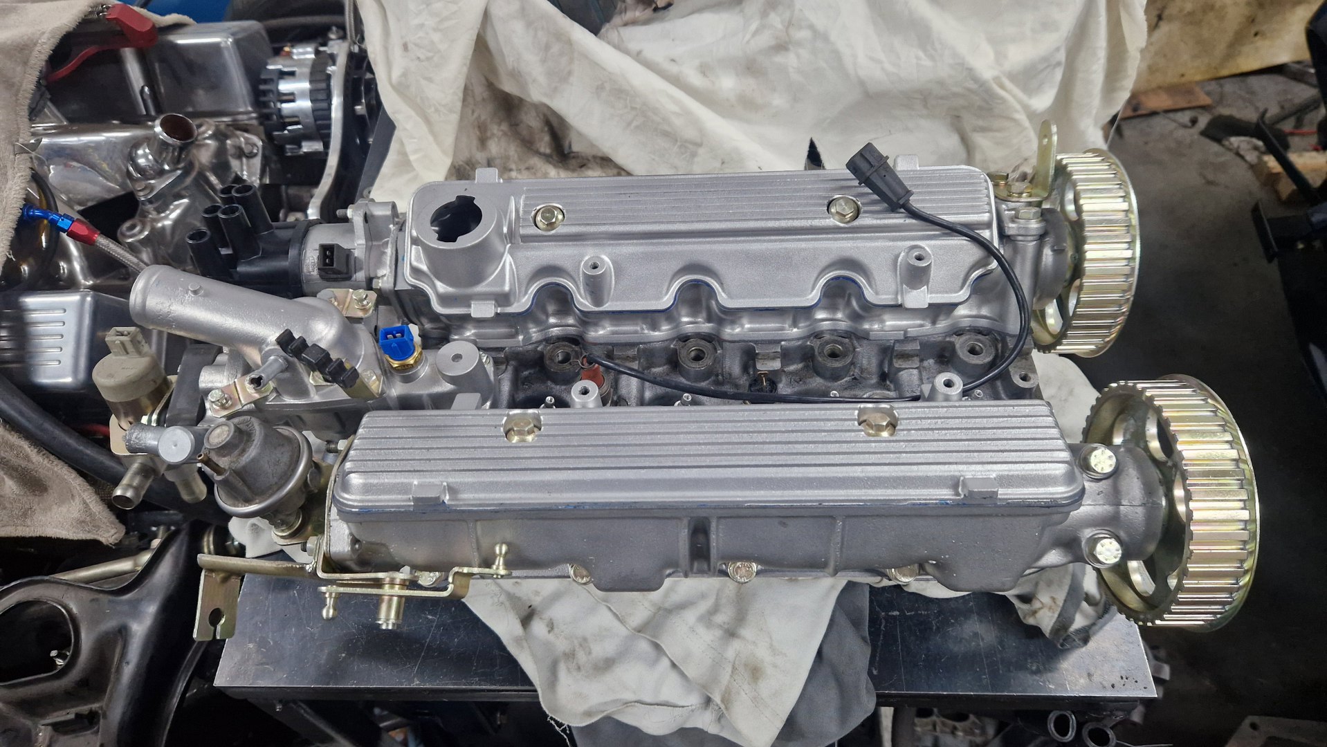 Obie pokrywy przykręcone. Świece, które tu wcześniej były, jakoś nie występowały w katalogach zamienników do tego konkretnego silnika, więc dobrałem odpowiednie zamienniki od nowa.