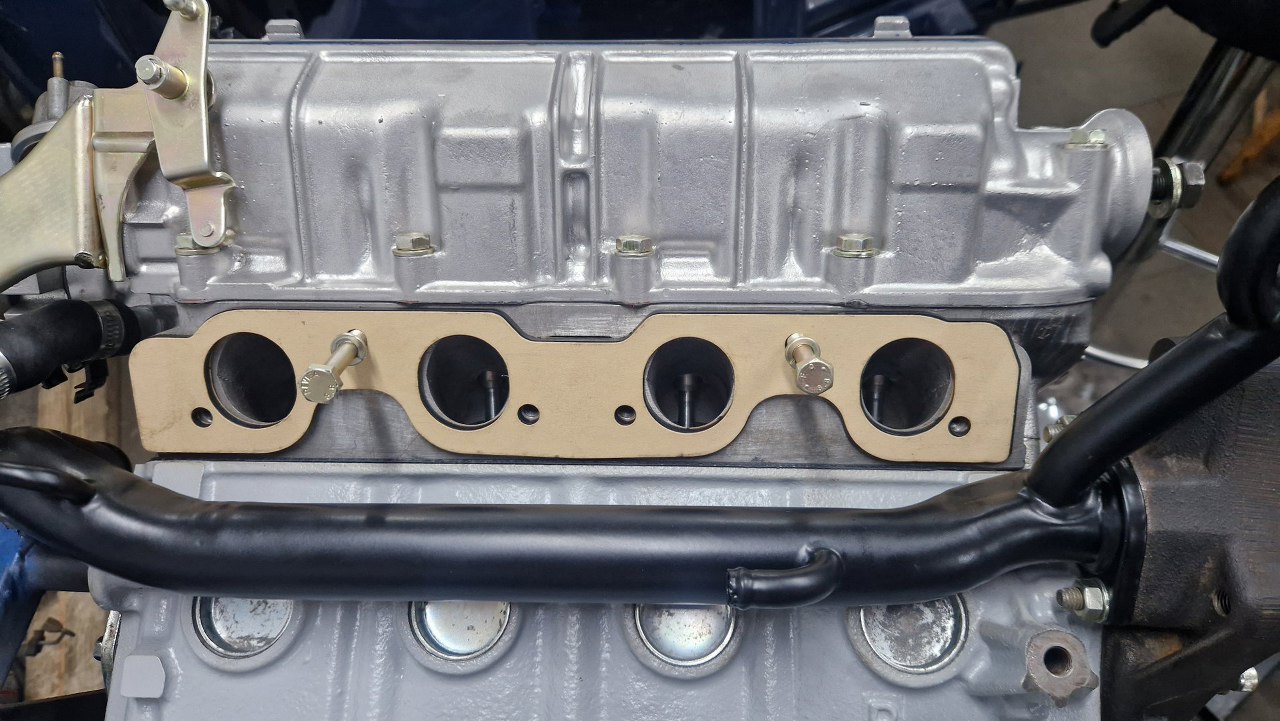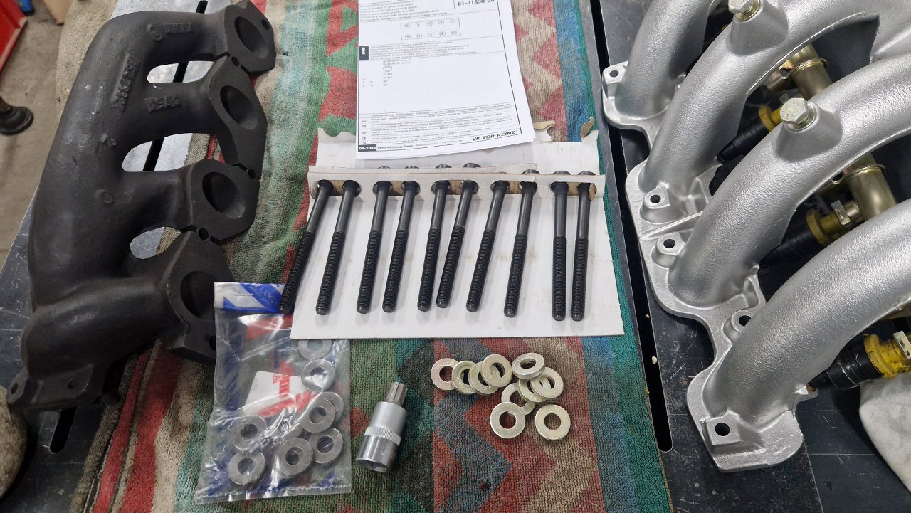 Przygotowałem uszczelkę kolektora dolotowego. Te dwie wkręcone śruby mają bardzo głębokie otwory, mam wrażenie, że przelotowe. Dlatego śruby w tych otworach dostaną uszczelniacz do gwintów.