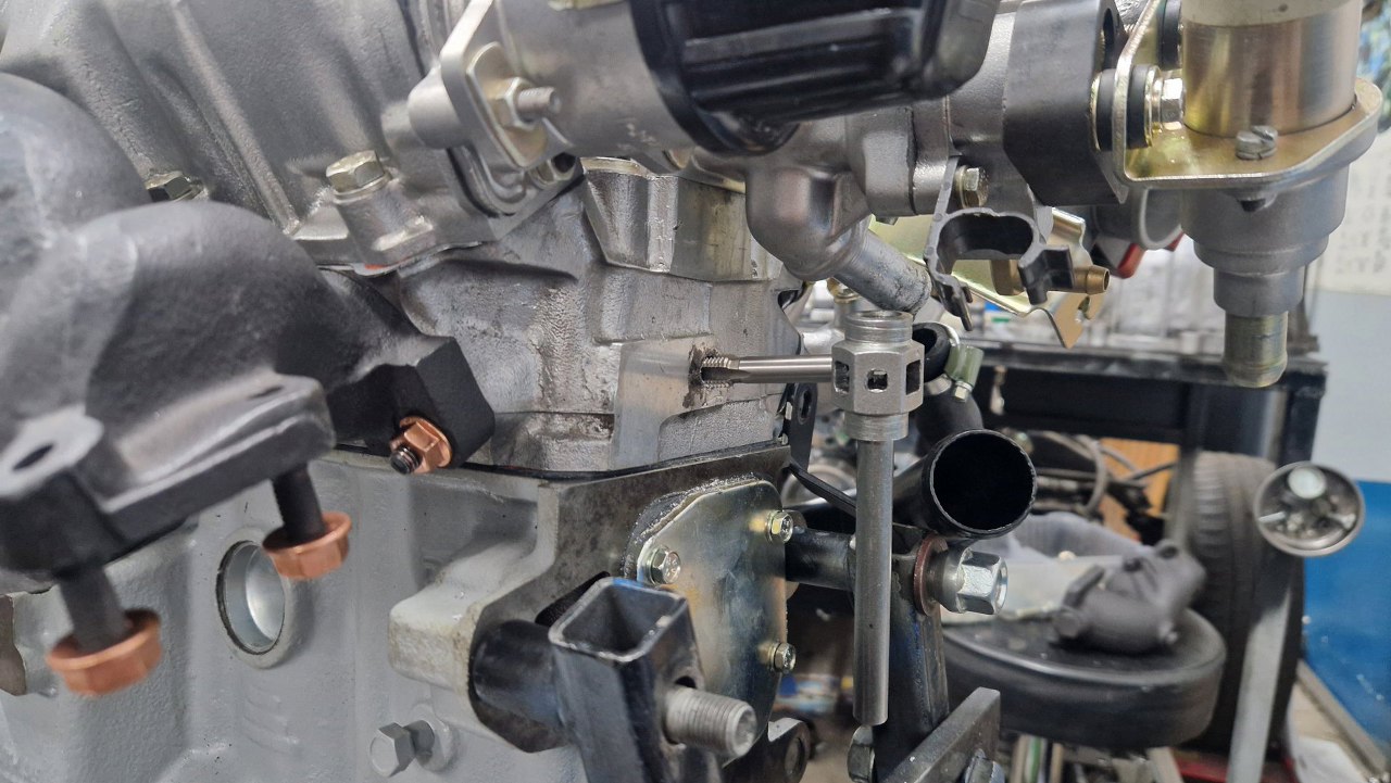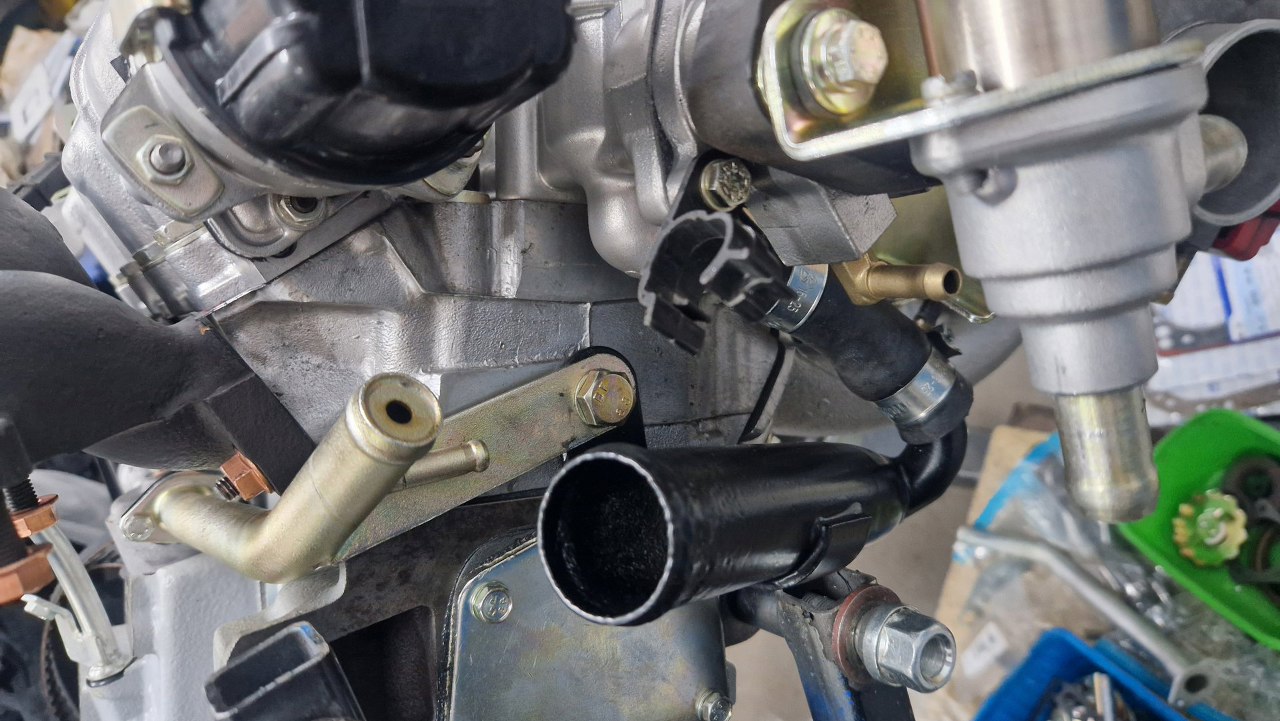 Idzie ona na tył silnika. Tam jest przykręcona do głowicy (nie widać tego na tym zdjęciu, ale jest to po lewej od gumowej rurki). Założyłem od razu gumową rurkę, bo ciężko byłoby ją założyć później.
