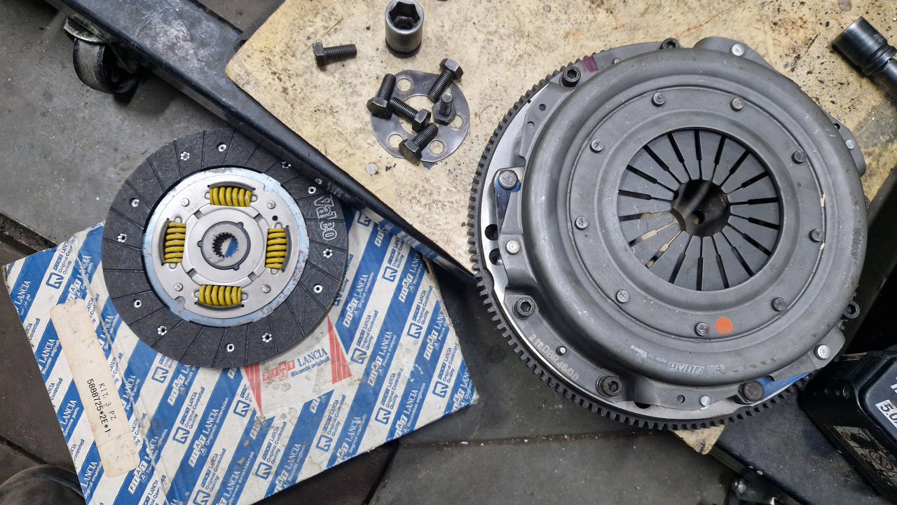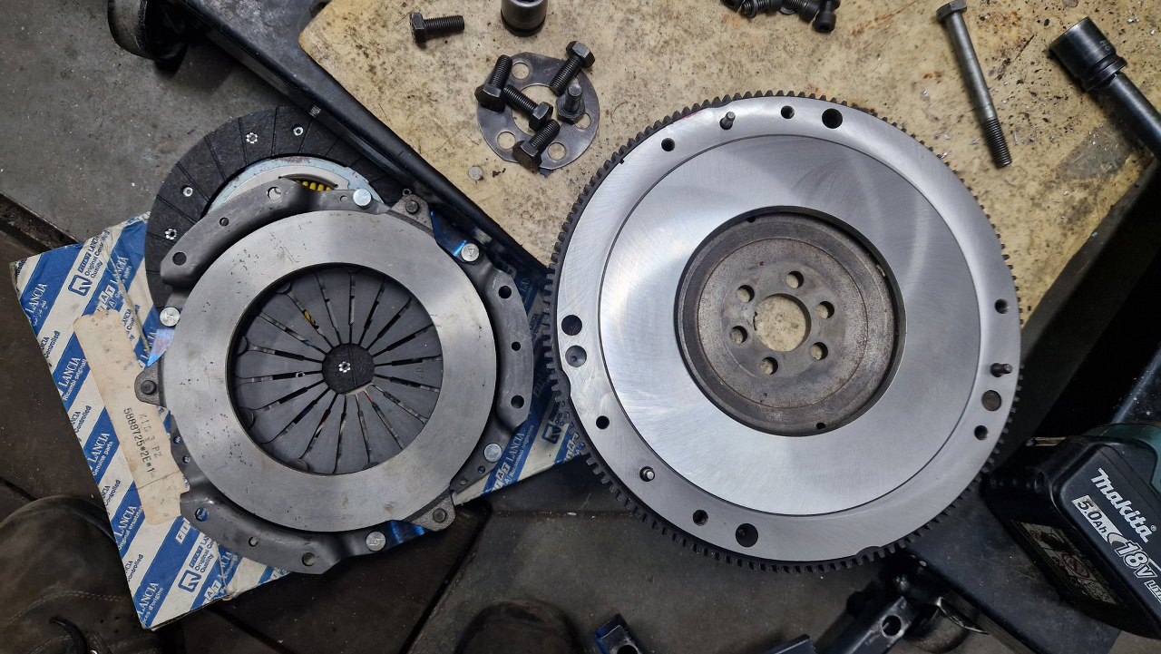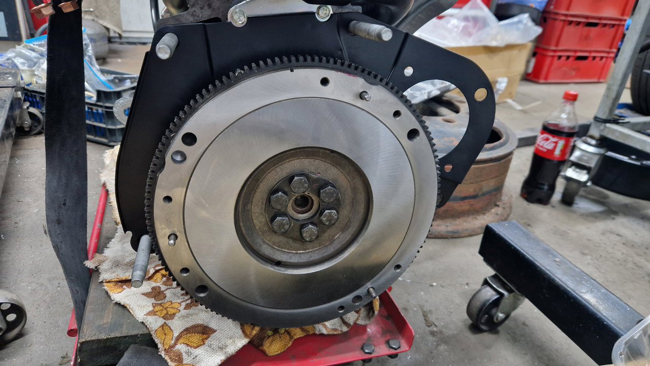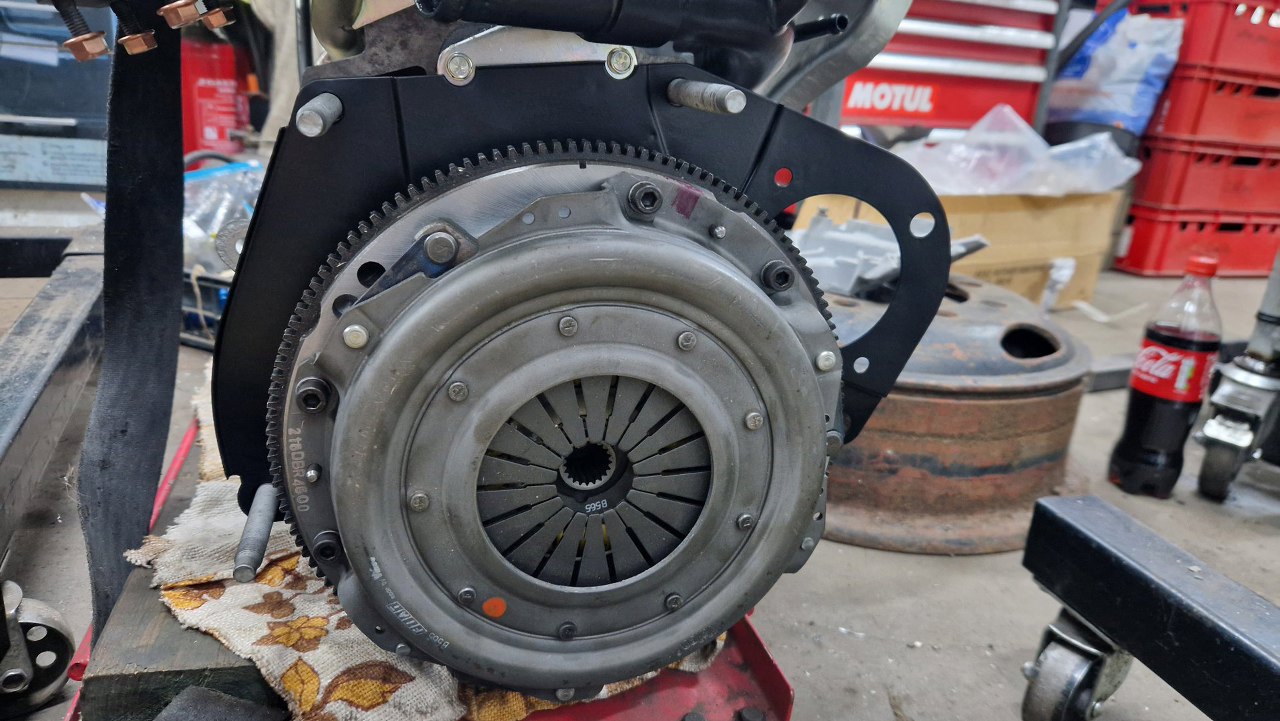 Tymczasem przykręcę koło zamachowe i sprzęgło.