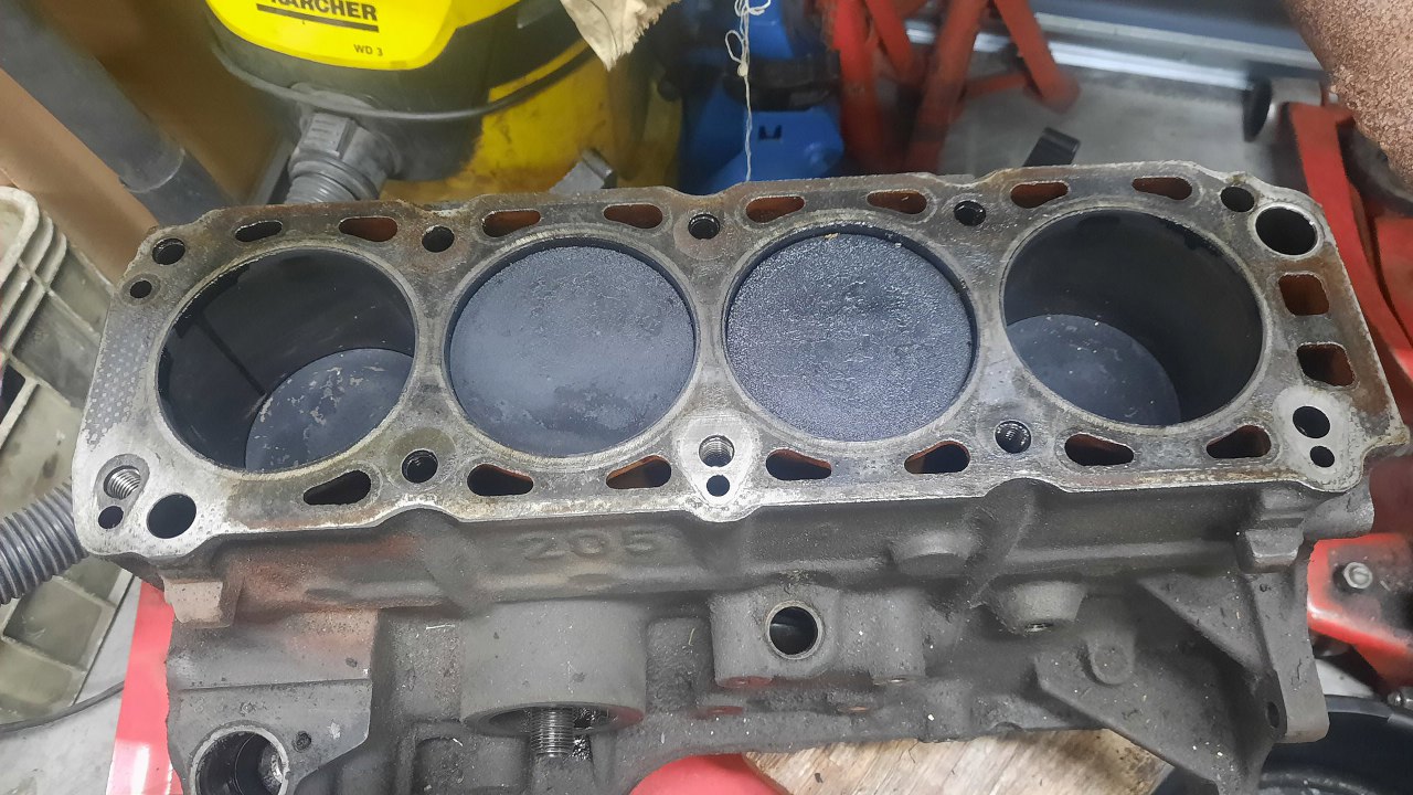 Najpewniejszym wyznacznikiem, co dalej z blokiem, jest pomiar. Pomiędzy tłokiem a cylindrem powinno być 0.04 - 0.06mm różnicy. Jest 0.13mm. Zdecydowanie za dużo. To jednoznacznie określa, że potrzebujemy nadwymiarowych tłoków.