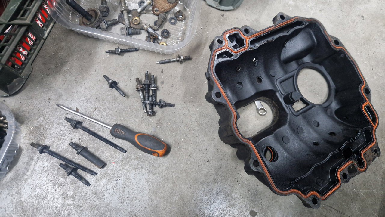 Potem pokrywa rozrządu i rozrząd.
