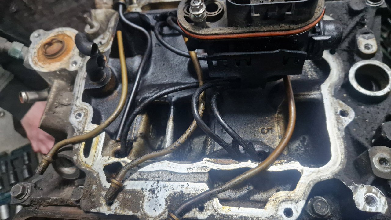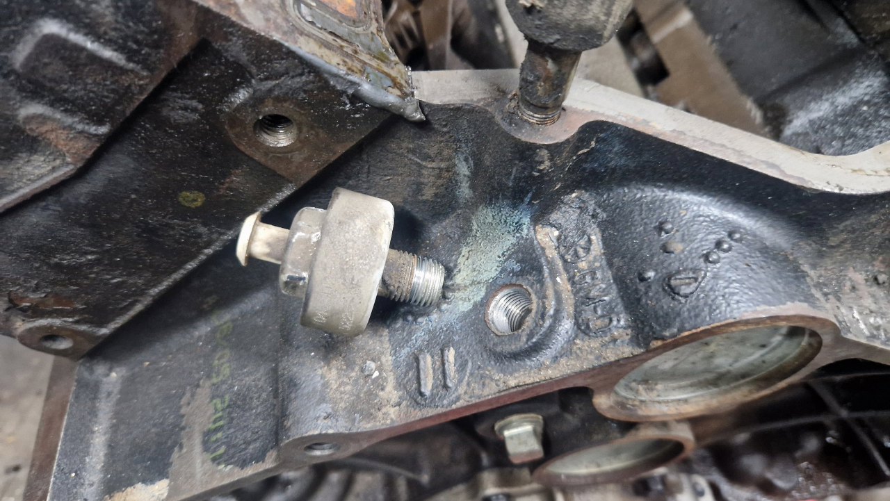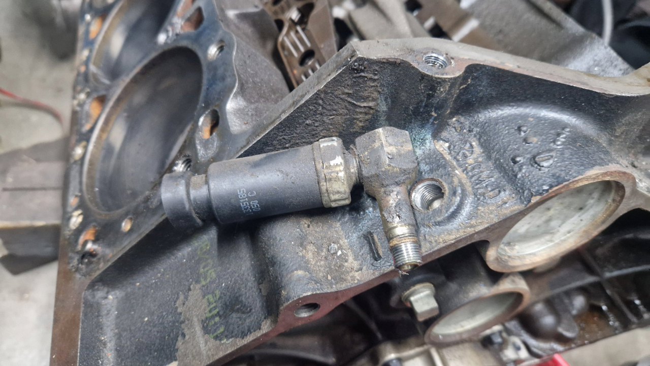 Odkręcony czujnik ciśnienia oleju.