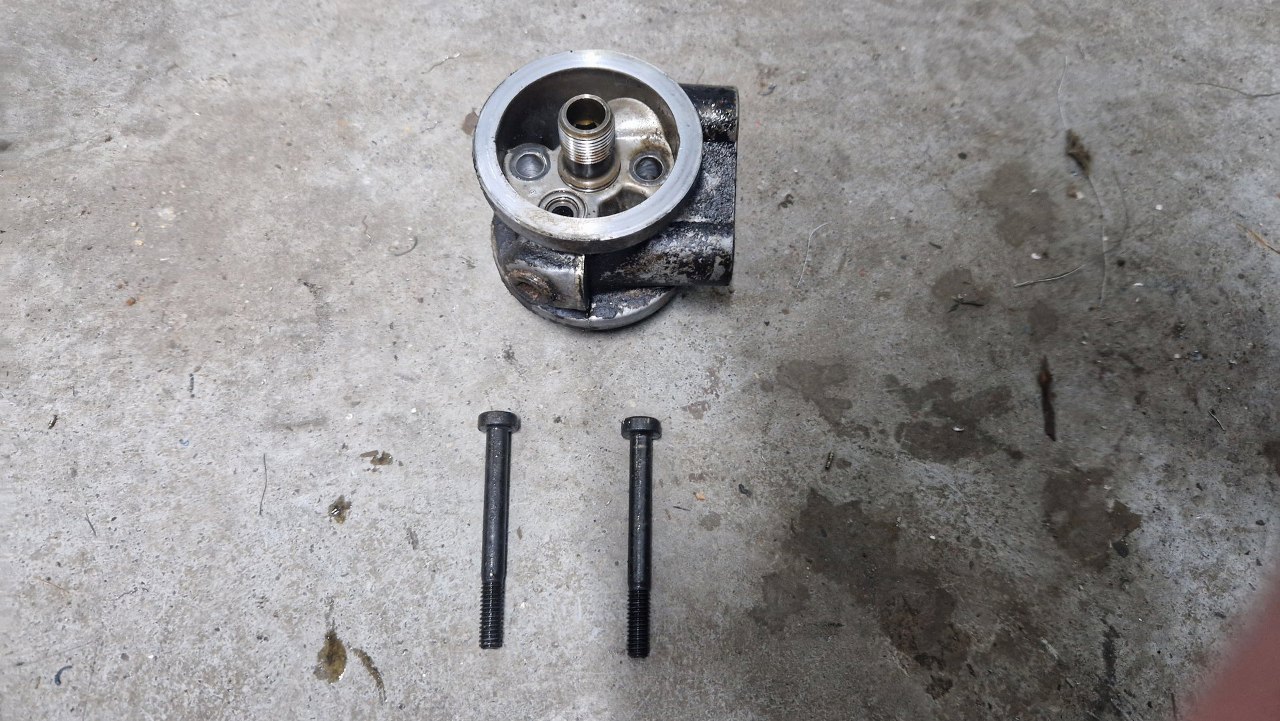 A tu adapter spod filtra oleju, wyprowadzający olej do chłodniczki.