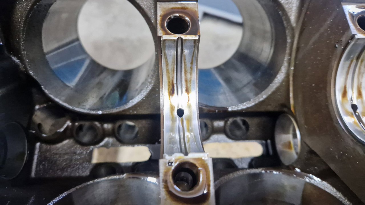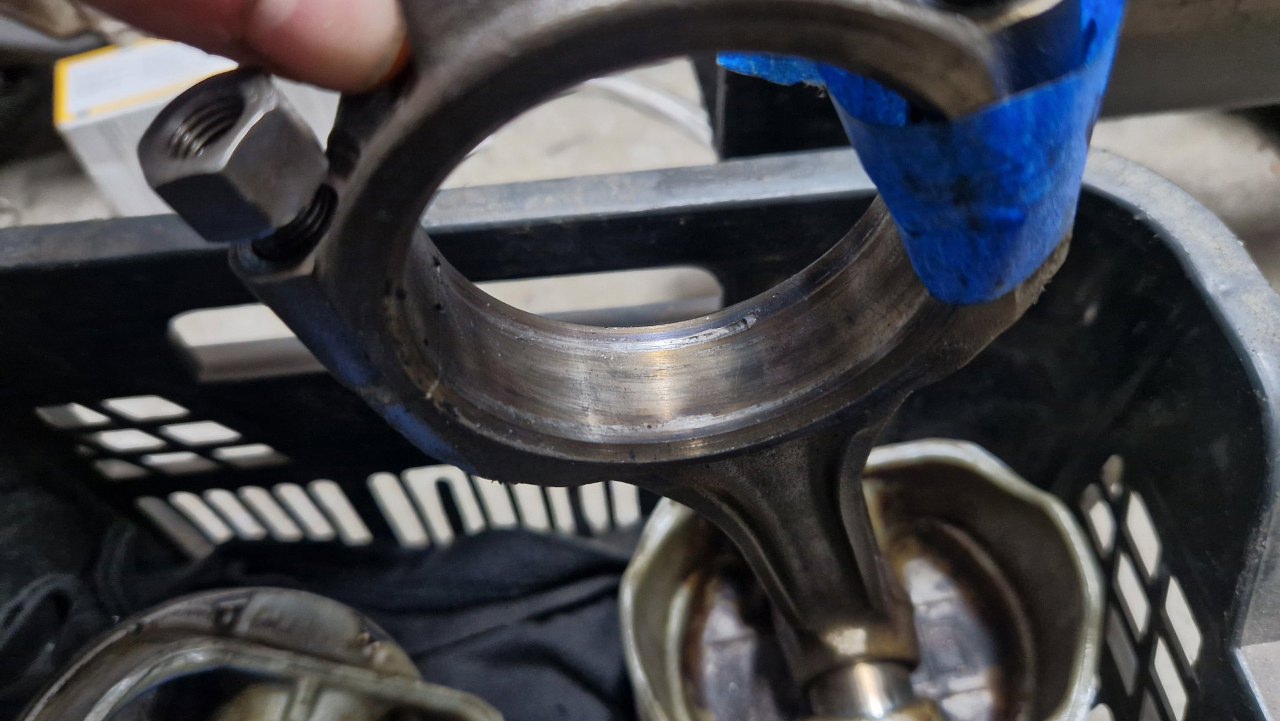 I mam dwa korbowody, które trzeba sprawdzić, czy da się naprawić. Tu widać ślady temperatury i lekkie zadziory...