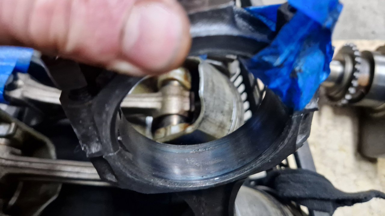 Widać od razu, który to korbowód się zatarł. Ciekawe, czy da się to uratować.
