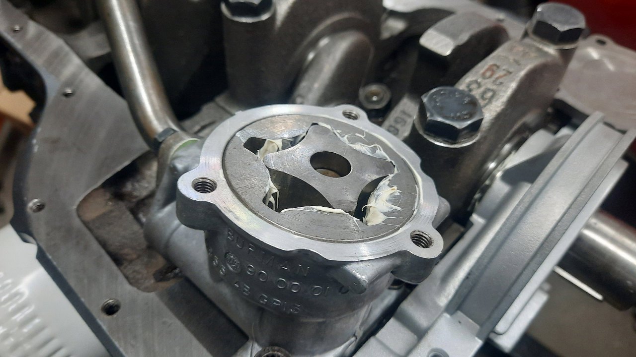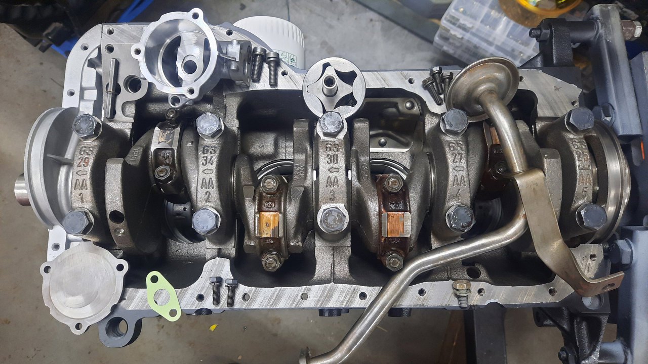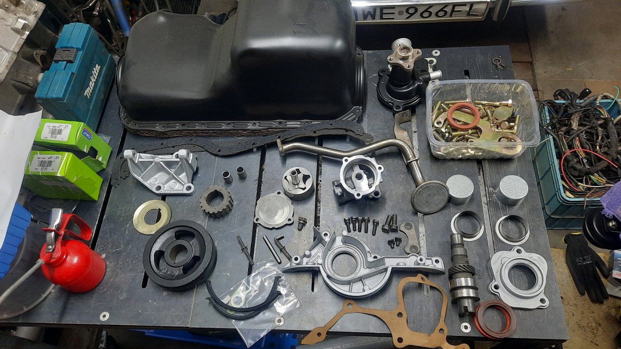 Pora zamykać dół silnika. Brakuje w zasadzie tylko pompy oleju. Oryginalna jest w tak dobrym stanie, że zostaje.