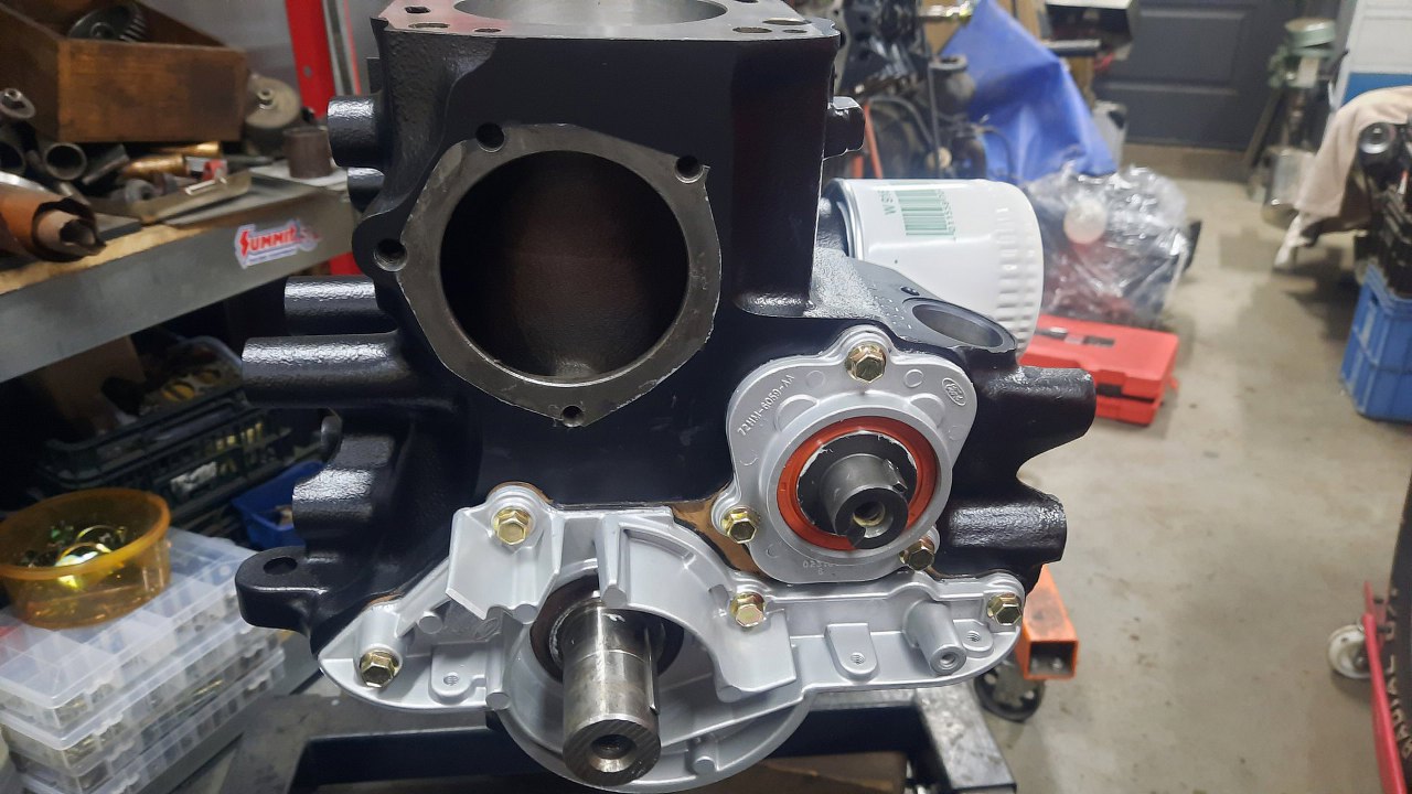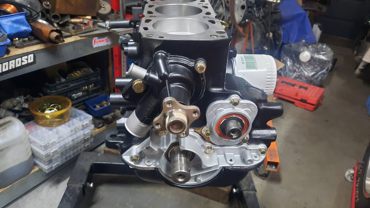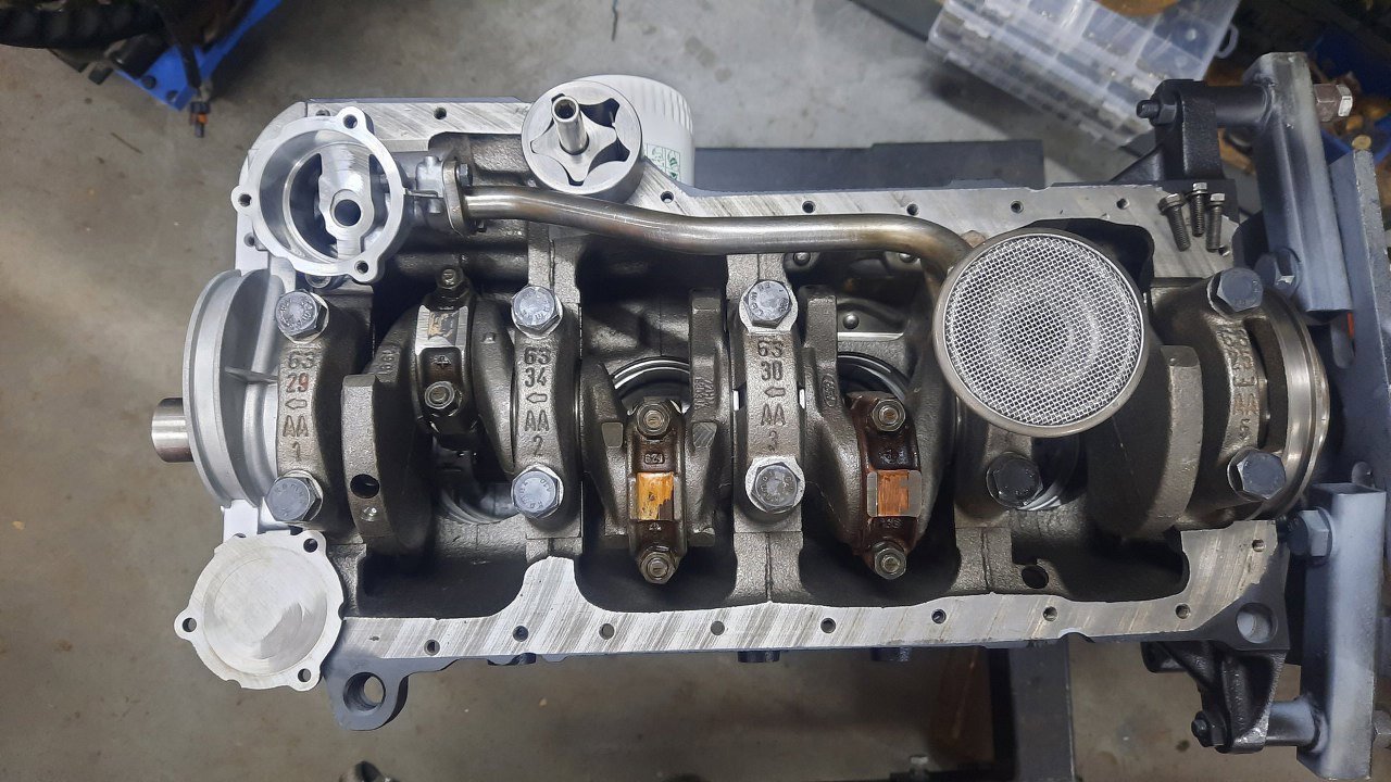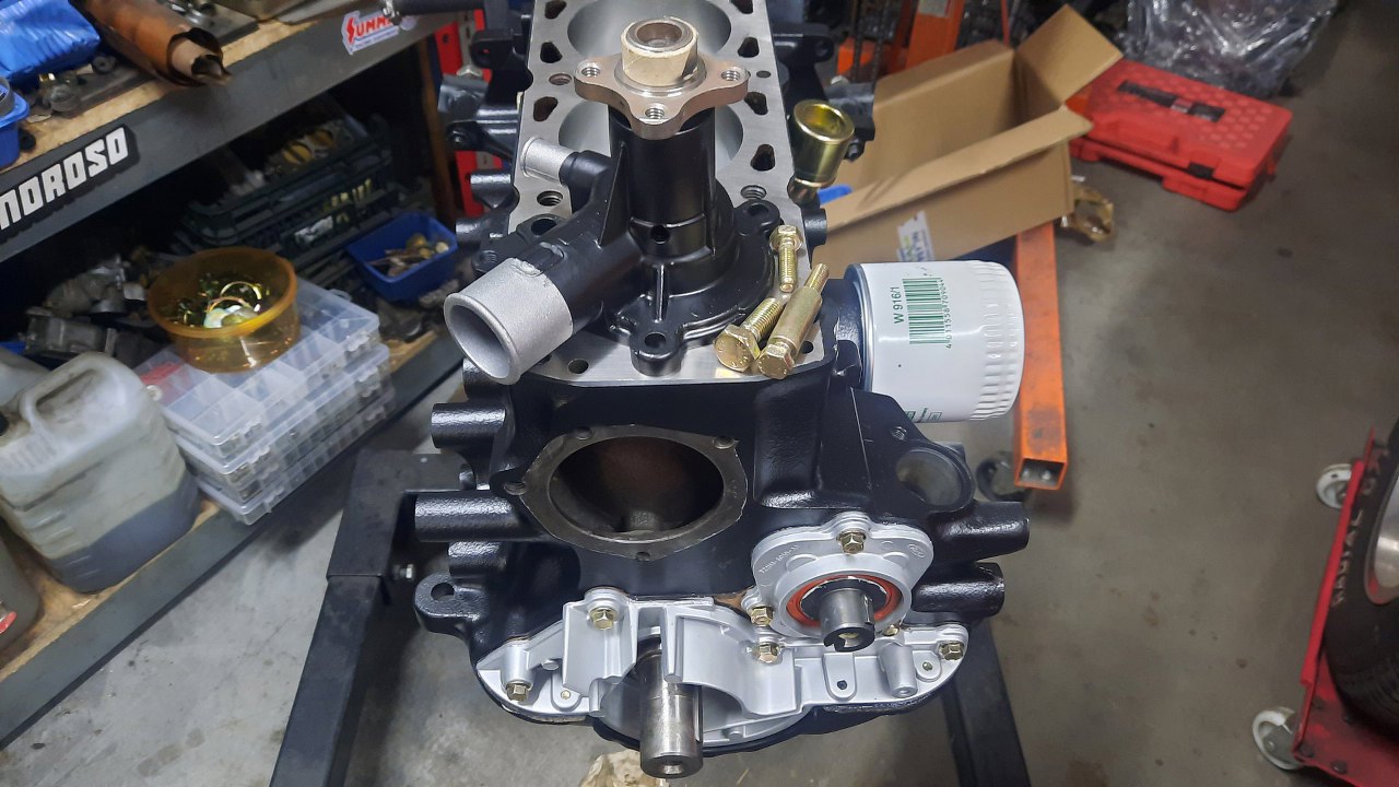 Pora zamykać dół silnika. Brakuje w zasadzie tylko pompy oleju. Oryginalna jest w tak dobrym stanie, że zostaje.