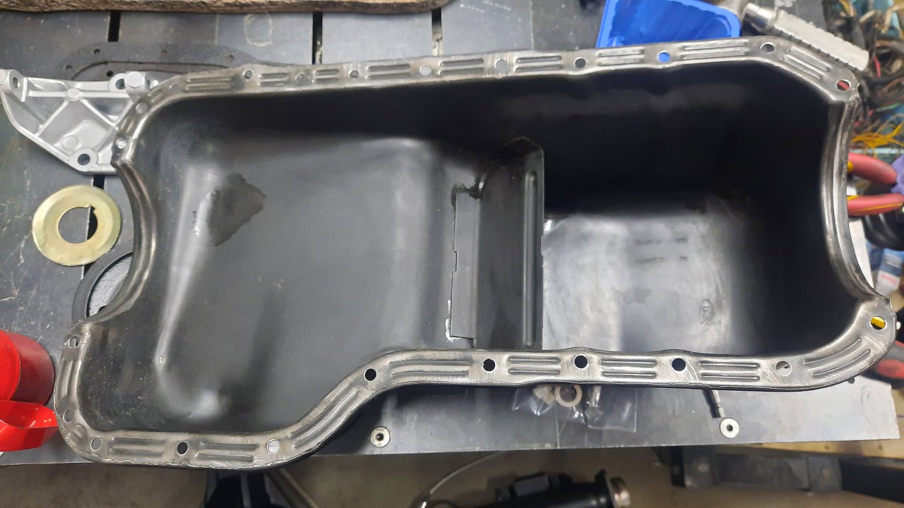 Miska olejowa była malowana proszkowo. W środku nie - w środku jest oryginalna powłoka, jeszcze z fabryki Forda. Doczyściłem cały środek z pyłów z malowania proszkowego.