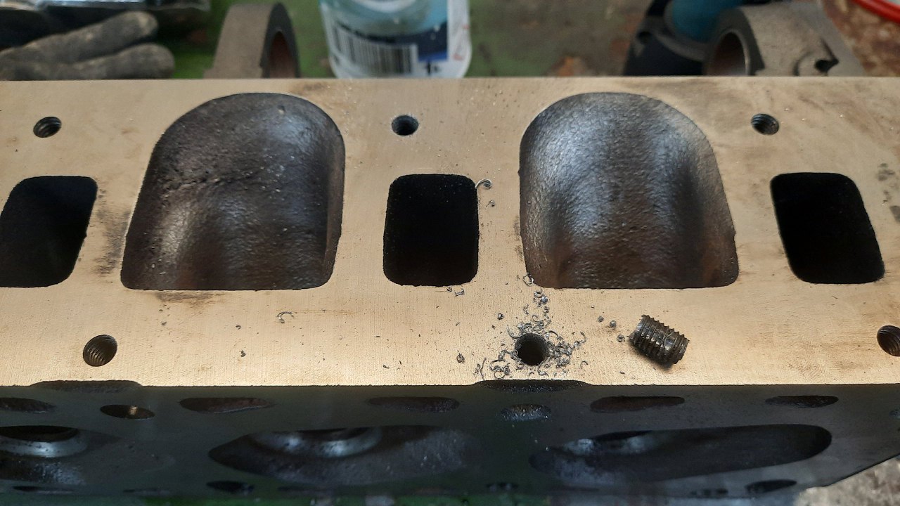 Zanim jednak cokolwiek złożę, zauważyłem, że były dwie urwane szpilki po stronie wydechowej. Udało mi się je całkiem sprawnie wyłuskać.