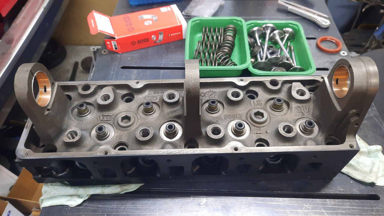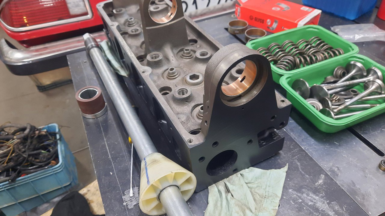 Z głowicą było w miarę prosto -zawiozłem do szlifierni i poprosiłem o ogarnięcie wszystkiego, co trzeba. Wróciła już obrobiona. Plus jest taki, że jest to już nowsza głowica, z twardymi gniazdami zaworowymi, więc chociaż tego nie trzeba było robić. Po powrocie głowicy ze szlifierni dokładnie ją oczyściłem i umyłem, a potem pomalowałem. Zaczynam zatem składanie.