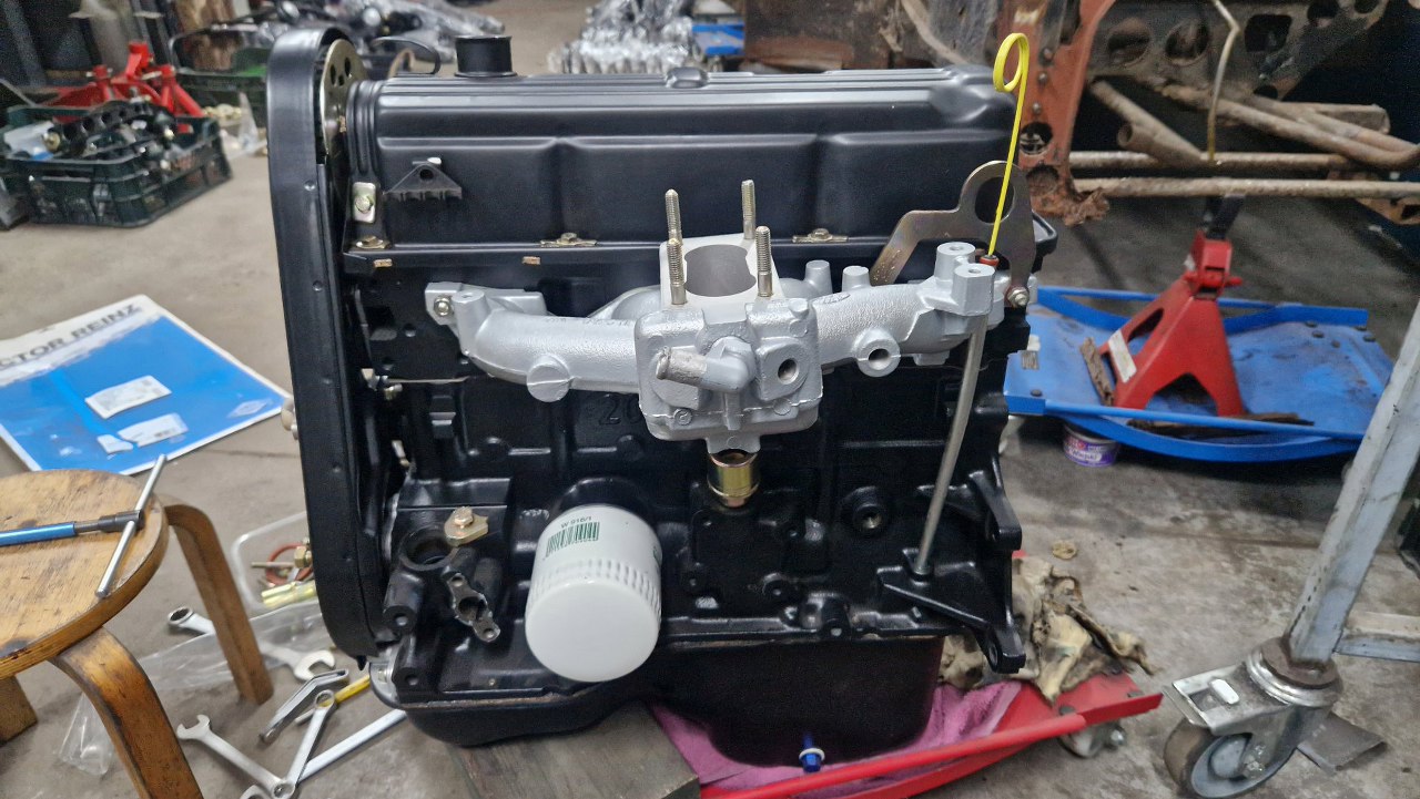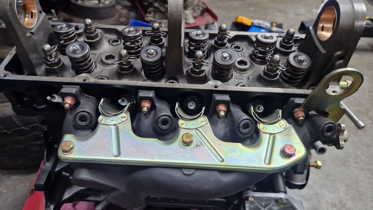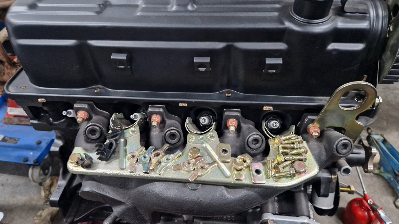 Mogłem już przykręcić kolektor dolotowy, razem z uchem do podnoszenia silnika po prawej stronie.