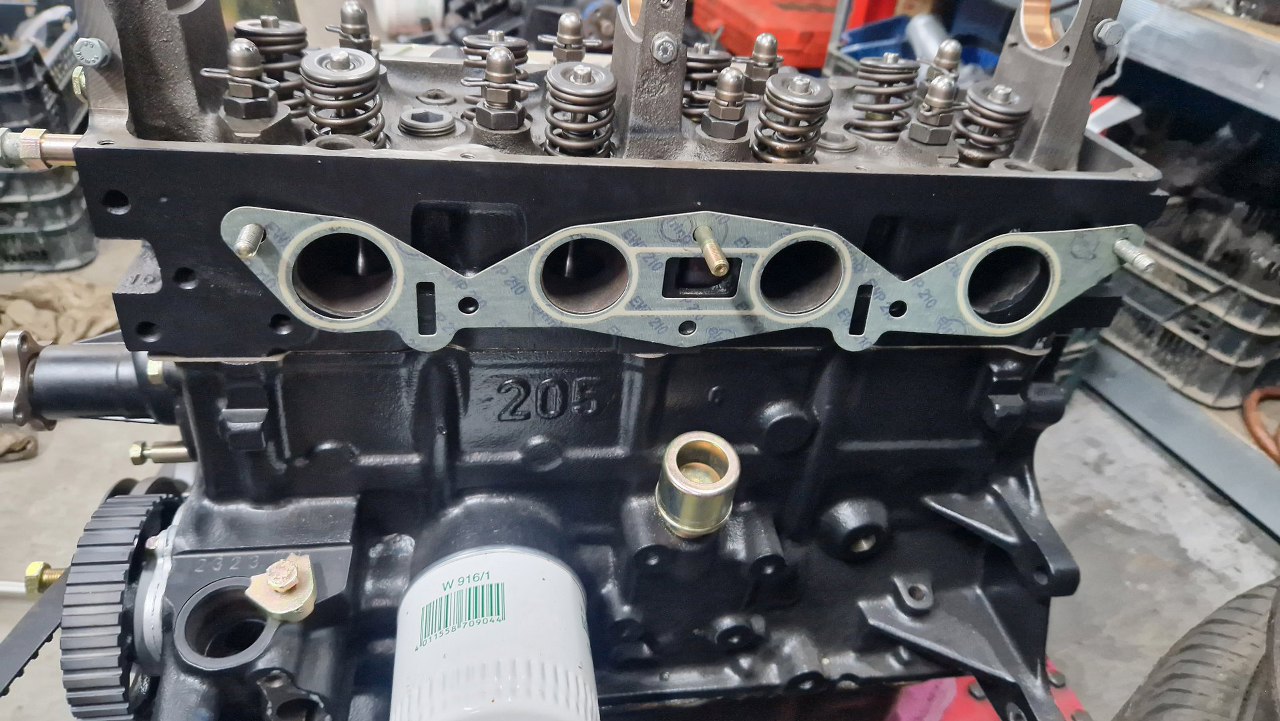 Z drugiej strony dobrałem i wkręciłem szpilki mocujące kolektor dolotowy i założyłem jego uszczelkę.