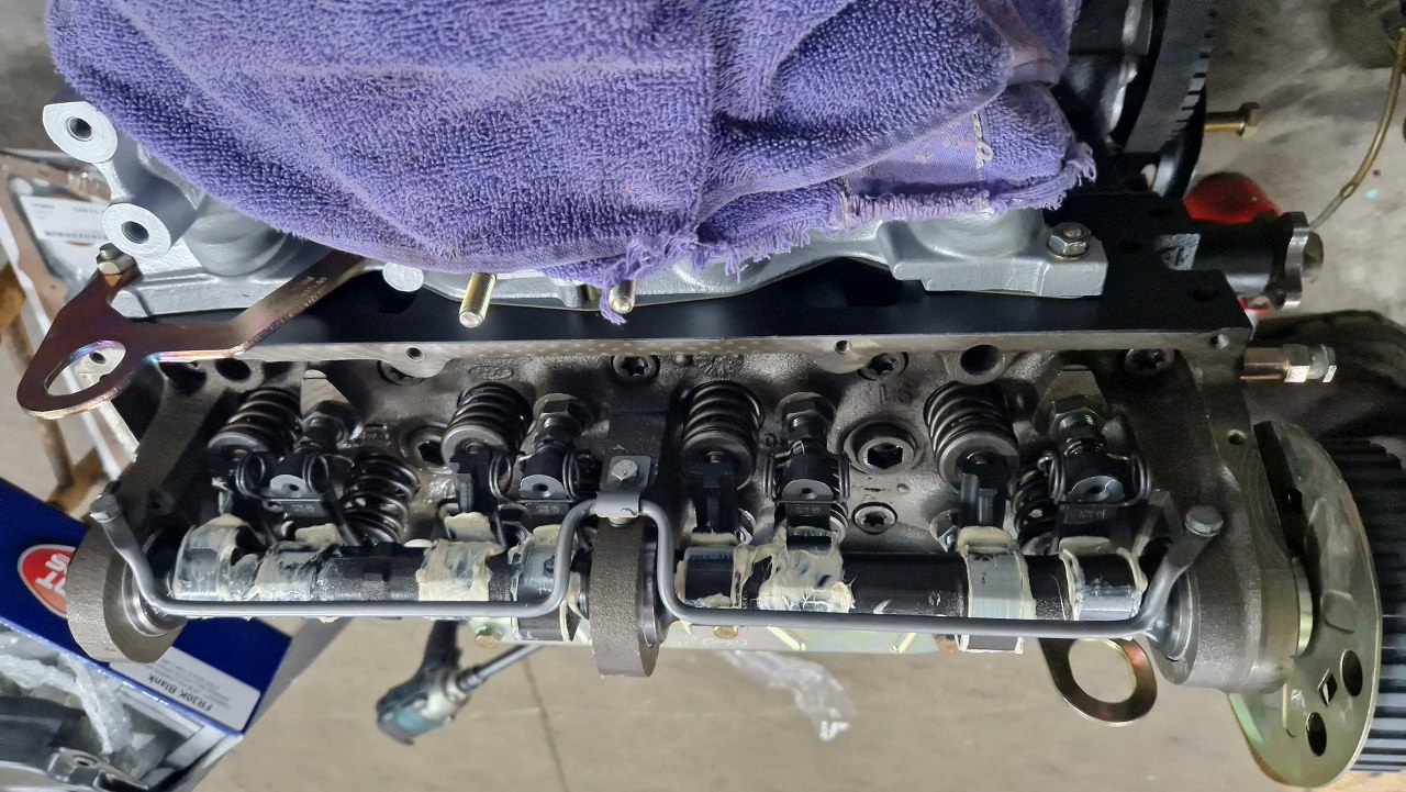 Potem zamontowałem dźwigienki zaworowe i wyregulowałem zawory. Przykręciłem też kółko paska rozrządu.