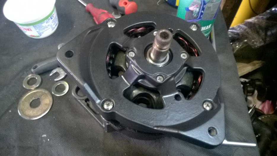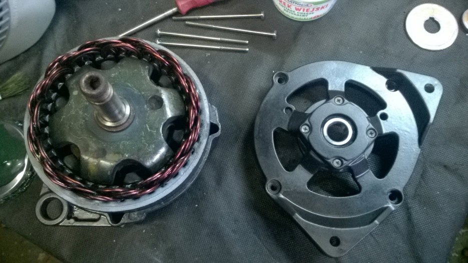 Tu już wszystkie części składowe alternatora są po odnowieniu. Obudowa też pomalowana na czarno.
