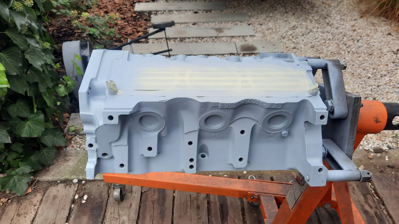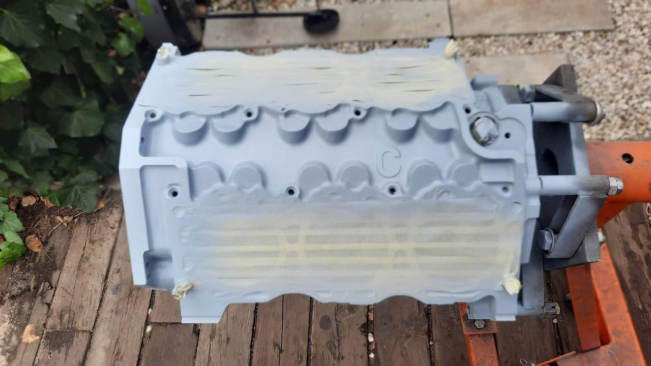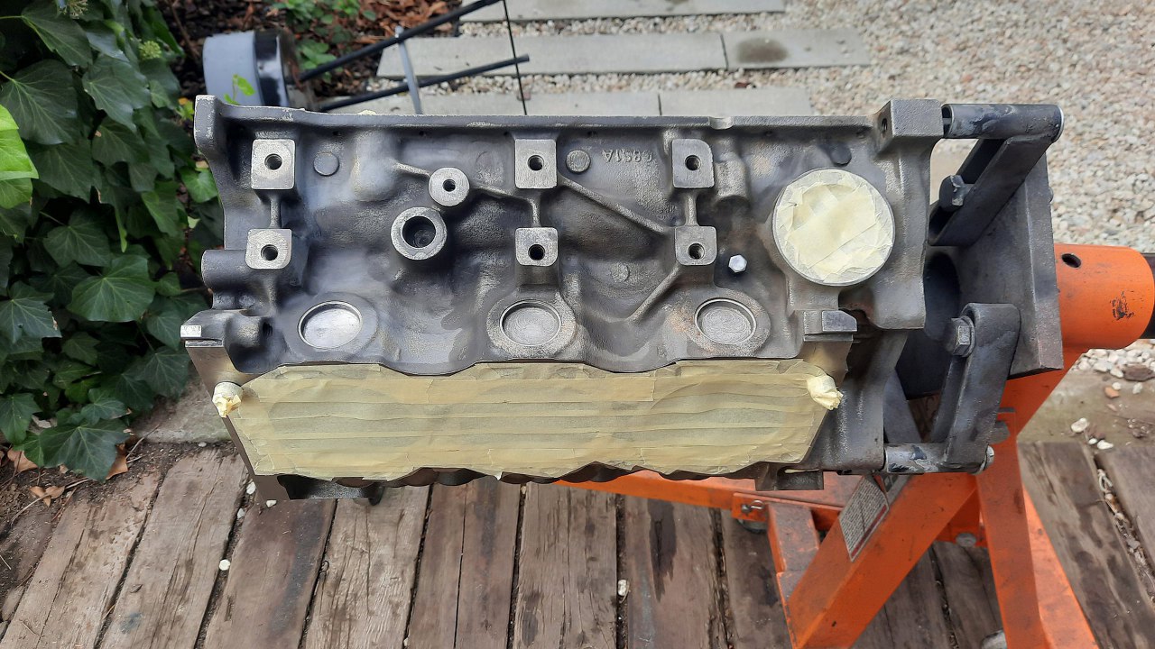 Lecę dalej zatem. Po dokładnym oczyszczeniu bloku z resztek farby i korozji dokładnie go domyłem i odtłuściłem, a następnie okleiłem.