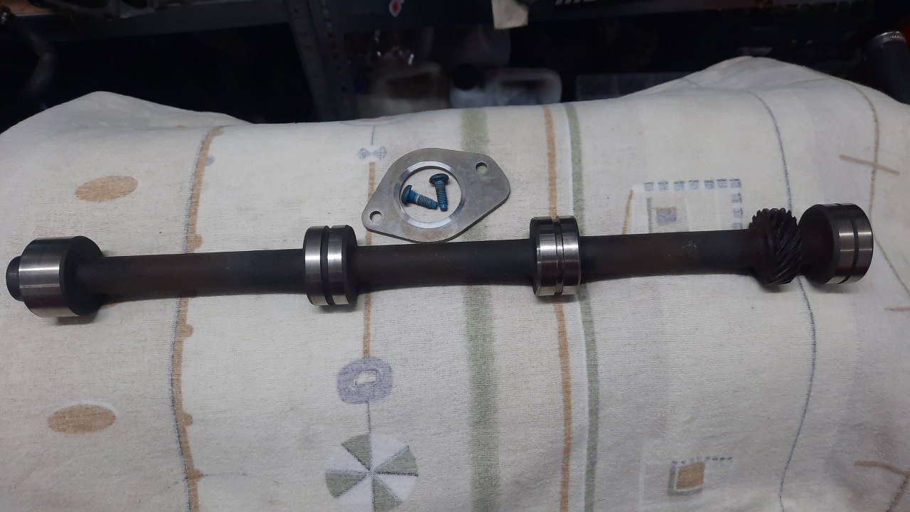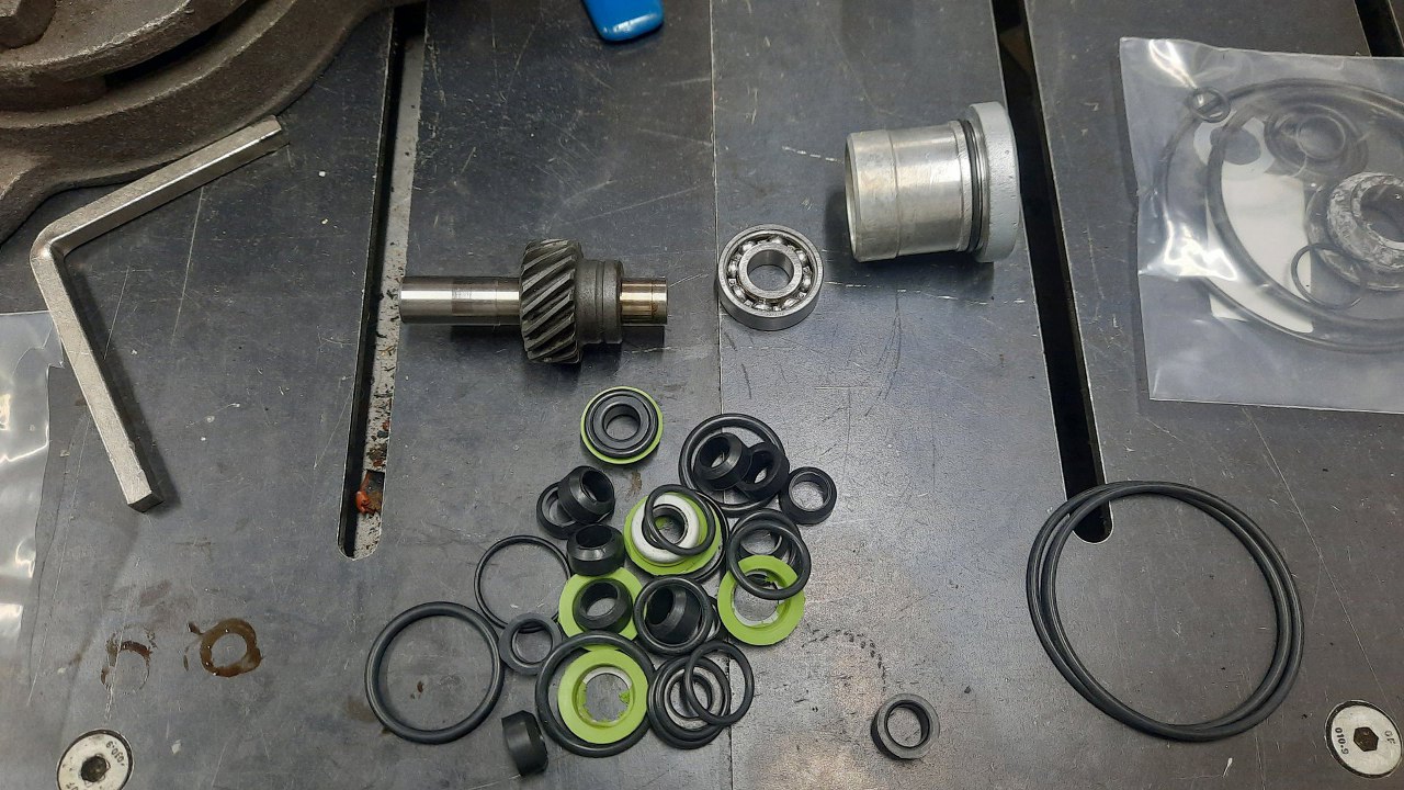 Tu już części wyczyszczone i gotowe do założenia. Oring też już na miejscu, chociaż w zestawie uszczelek przychodzi ich całe stado i ciężko się zorientować który gdzie idzie. Kupiłem też nowe łożysko.