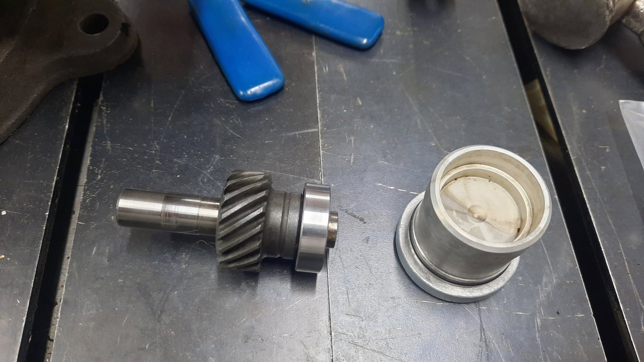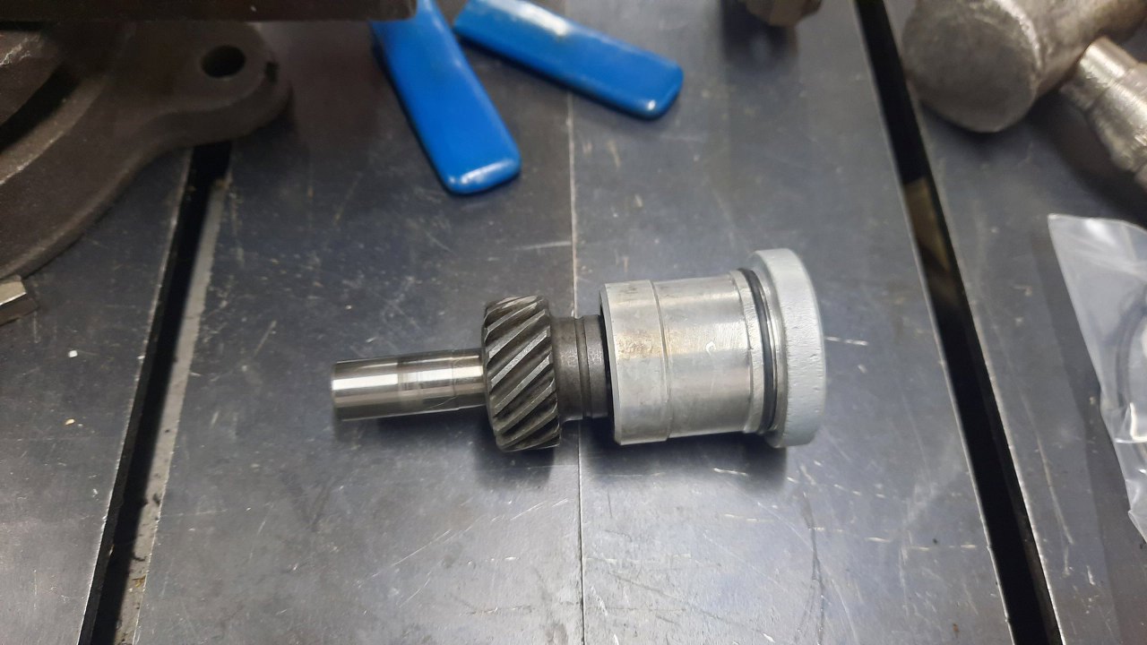 No nic, składam dalej. Dla przypomnienia, tak wyglądał po demontażu napęd pompy oleju. Pod samym kołnierzem po lewej stronie jest oring, którego tu nawet nie widać.