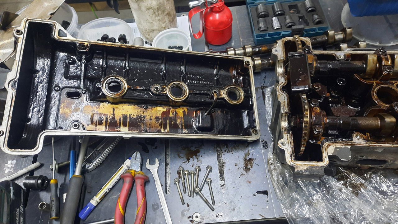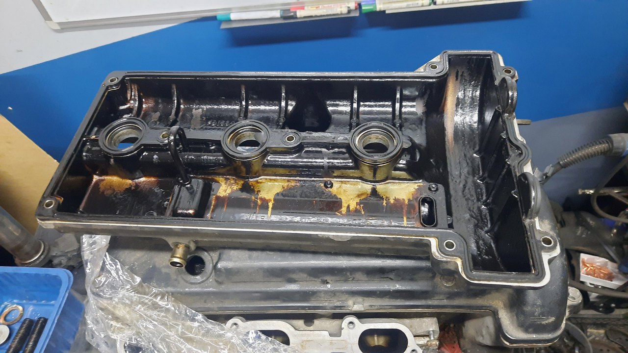 Potem otworzyłem pokrywę zaworów. Zdążyłem już zapomnieć jak tu jest syfiasto. No nic, trzeba będzie domyć...