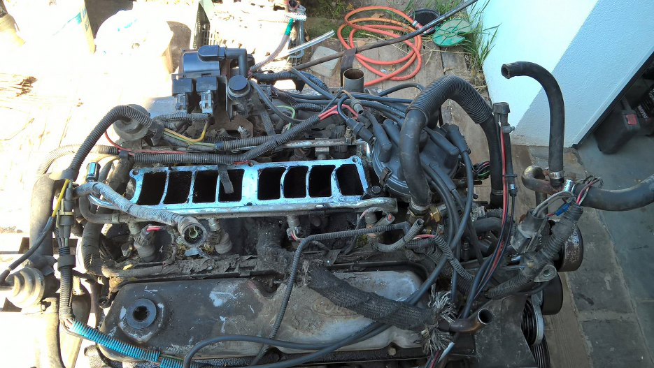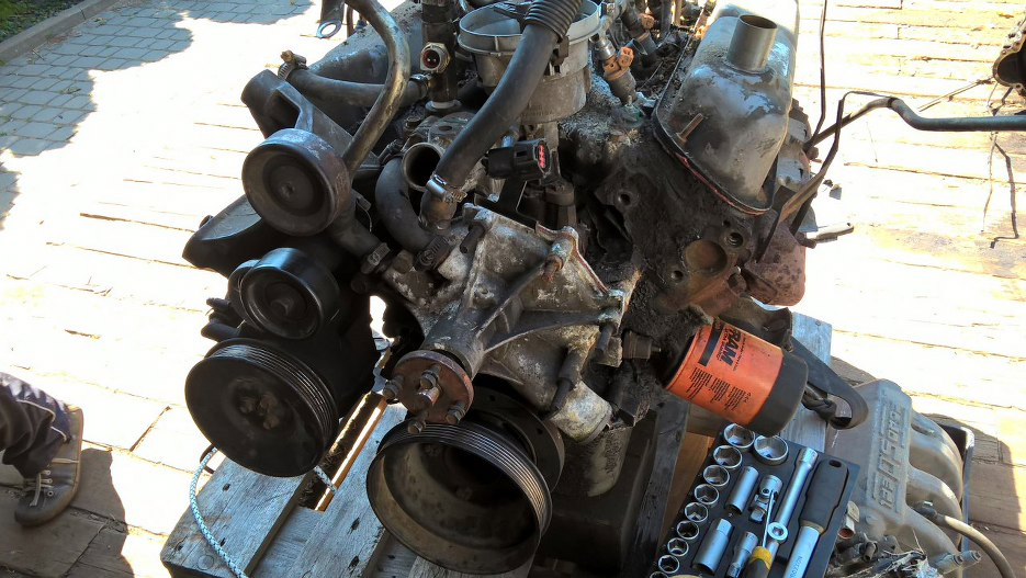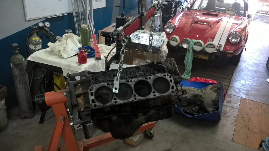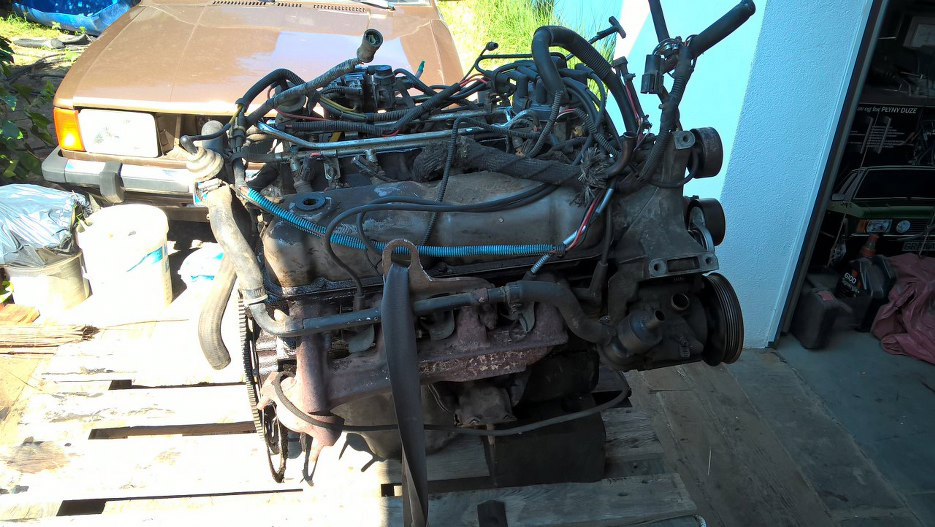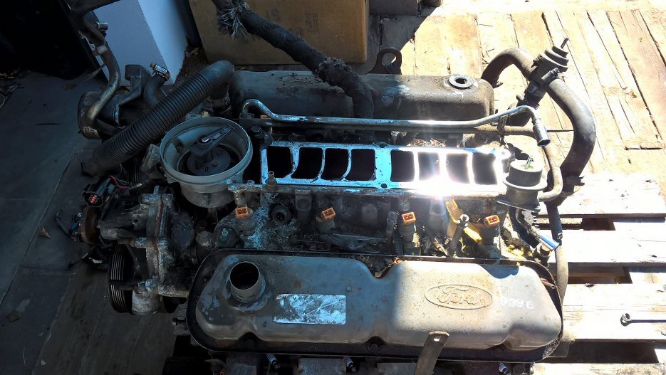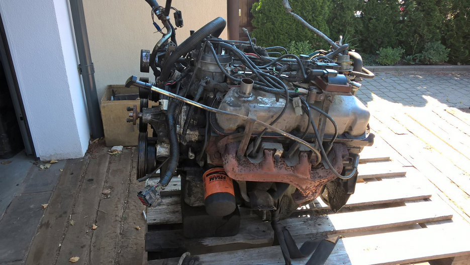 Trochę się wzbraniałem przed tak młodym silnikem, bo z 1993 roku, ale konstrukcyjnie jest to wciąż mentalność lat '60, więc w końcu uległem, zastrzegając, że na wtrysku się nie znam. Przyjechał więc do mnie silnik 5.0 V8 Forda. Pierwszy problem pojawił się przy rozładowywaniu, bo przyjechał w zamkniętym dostawczaku, a ja wyciągarkę mam pod sufitem... A ja jestem chuchro i nie dam rady tego ręcznie wytargać.