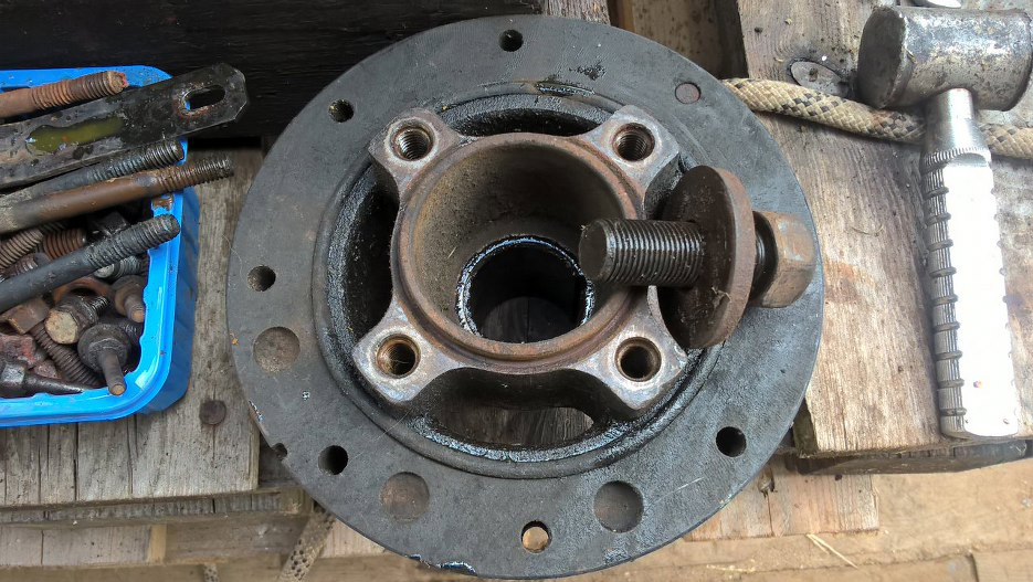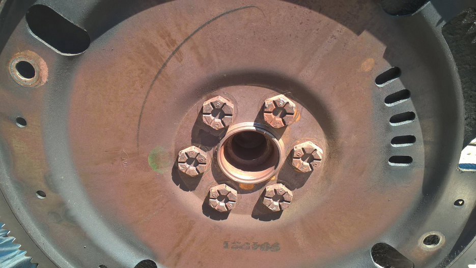 Słabo na zdjęciu widać, ale śruby koła zamachowego noszą ślady odkręcania przez jakiegoś rzeźnika.