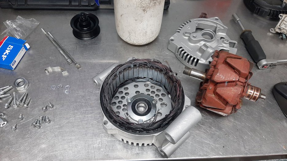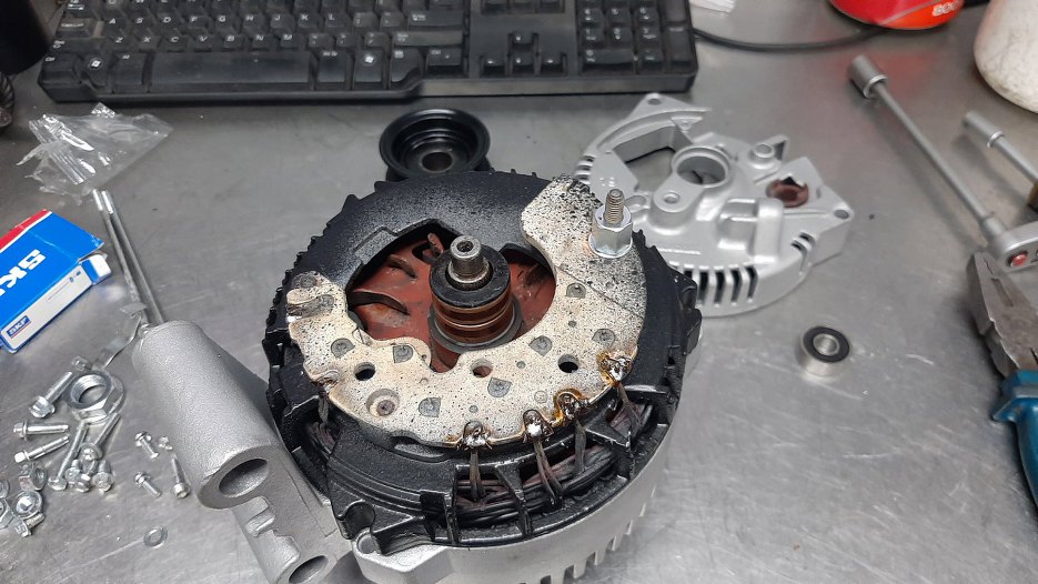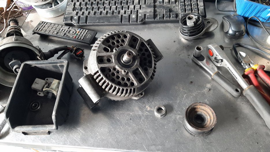 W oczekiwaniu na przypłynięcie gratów do silnika rozkręciłem trochę osprzętu. Na przykład alternator.