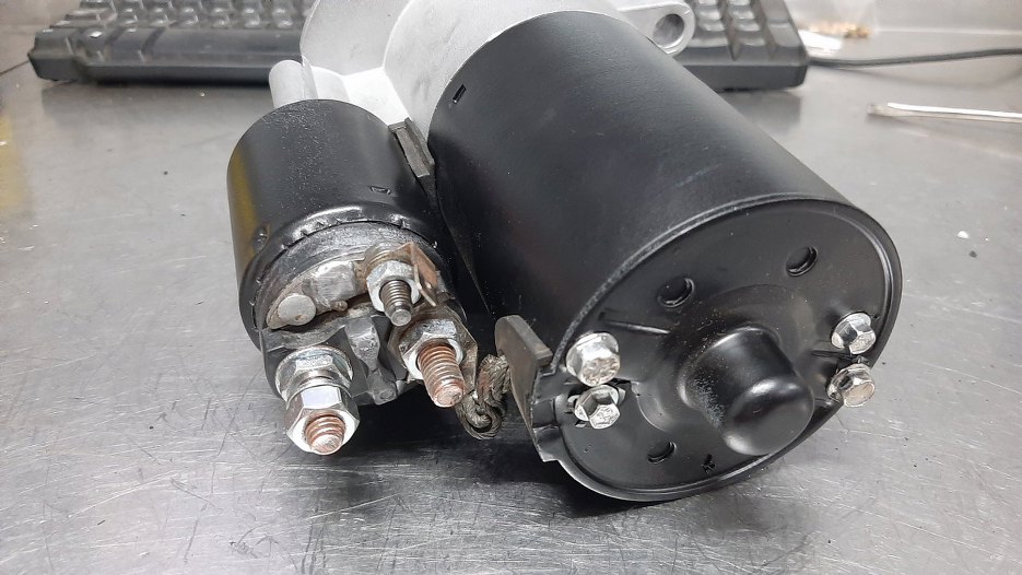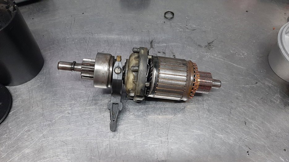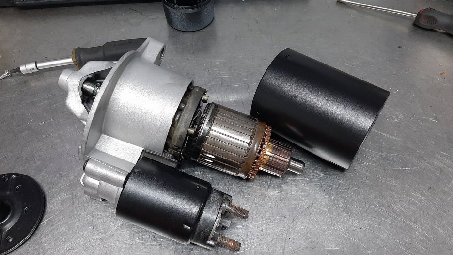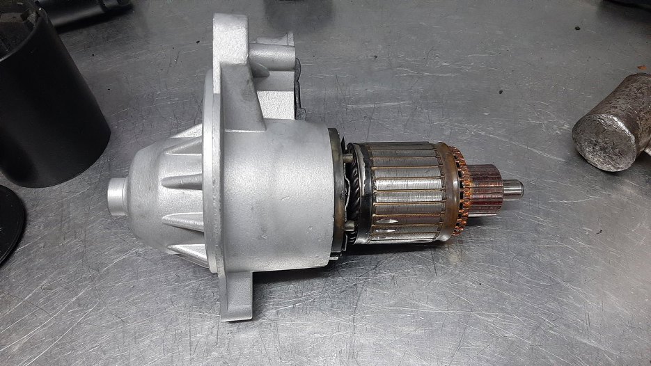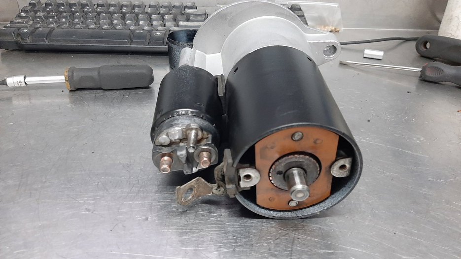 I rozrusznik w proszku. Po lewej widać przekładnię planetarną.