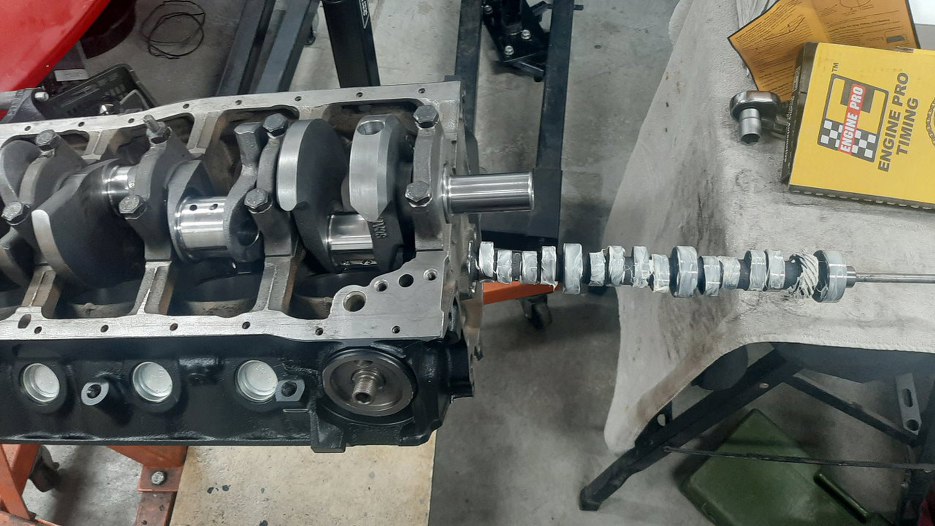 Żeby mi się za dużo rzeczy nie walało po stoliku z częściami, wkadam od razu wałek rozrządu. Ten został dobrany bardziej pod kątem momentu obrotowego, a nie kręcenia szalonych mocy w górnym zakresie obrotów.
