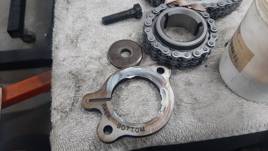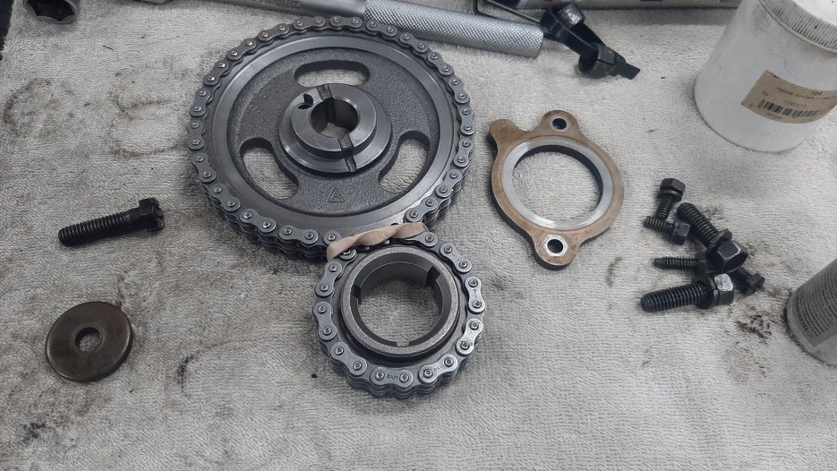 Przygotowałem też nowy zestaw rozrządu. Płytka trzymająca wałek i śruby są oczywiście stare, ale doczyszczone.