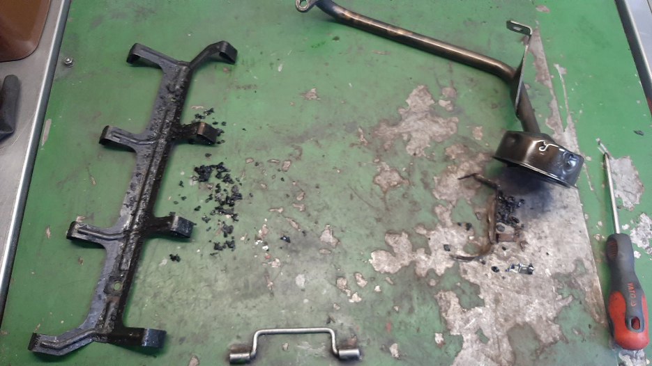 Wygrzebałem z części smok pompy oleju i blachę trzymającą płytki ustalające popychacze. Taka przypominajka w jakim stanie był ten silnik. Pod sitkiem smoka widać okruchy z niego wygrzebane, razem z glutem silikonowym, a po lewej czipsy olejowe zeskrobane z blaszki.