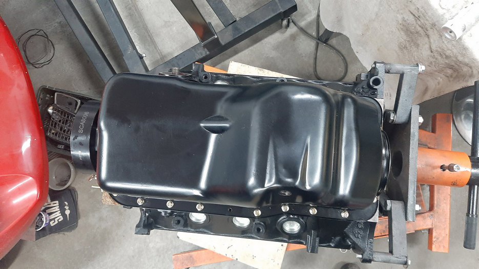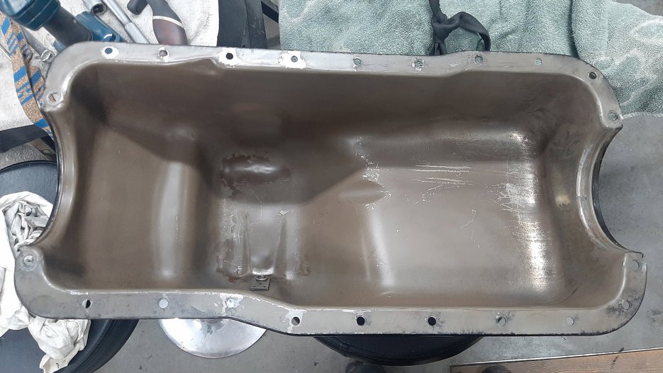 Miska olejowa była piaskowana i malowana proszkowo. Po zdjęciu zabezpieczeń byłem mile zaskoczony, bo praktycznie nic się nie zapyliła w środku. Wysypałem z niej trochę ścierniwa i jest czysta. Oczywiście dla pewności przetarłem ją do czysta.