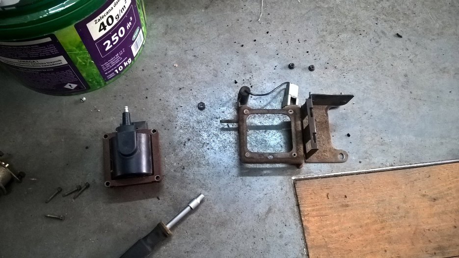 Przy mocowaniu cewki jest też mocowanie zaworków podciśnieniowych o kondensator.