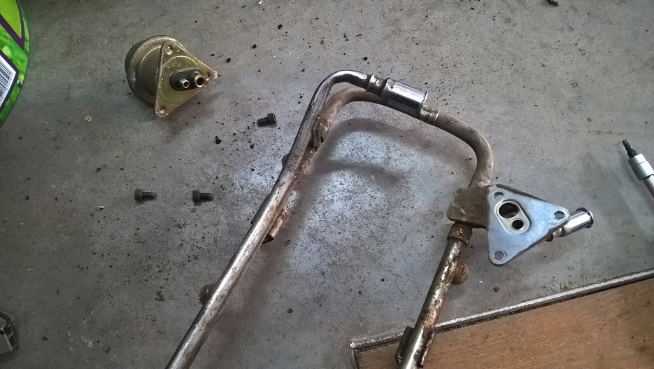 Z listwy wtryskowej wyjąłem wtryski i odkręciłem regulator ciśnienia paliwa.