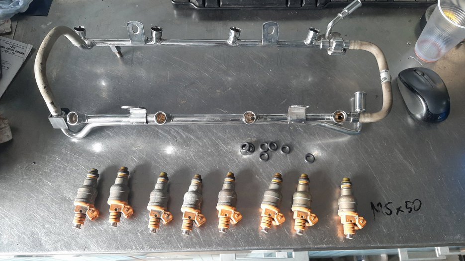 Listwa wtryskowa była przybrudzona i nieco podkorodowana, ale ładnie się odrdzewiła i wygląda teraz tak. Wtryski umyłem w myjce ultradźwiękowej.