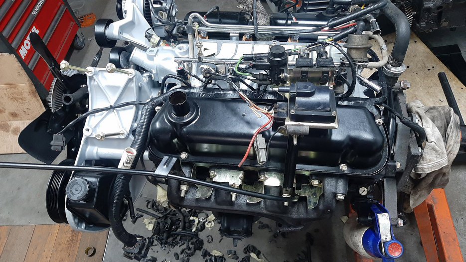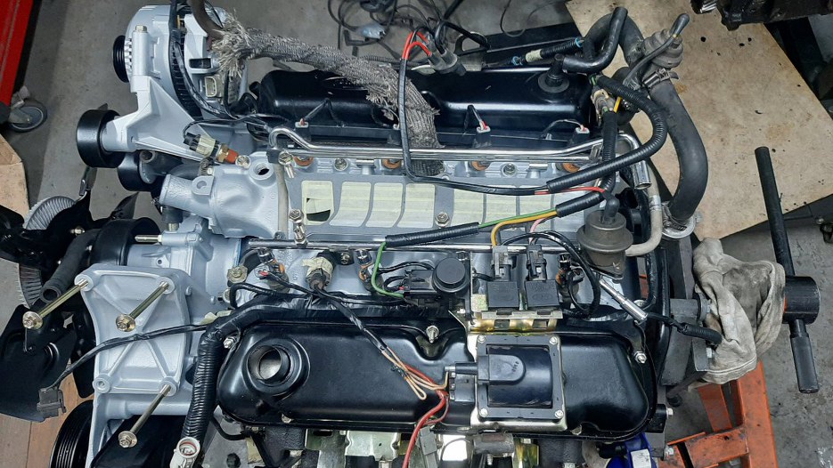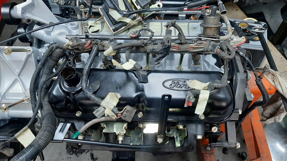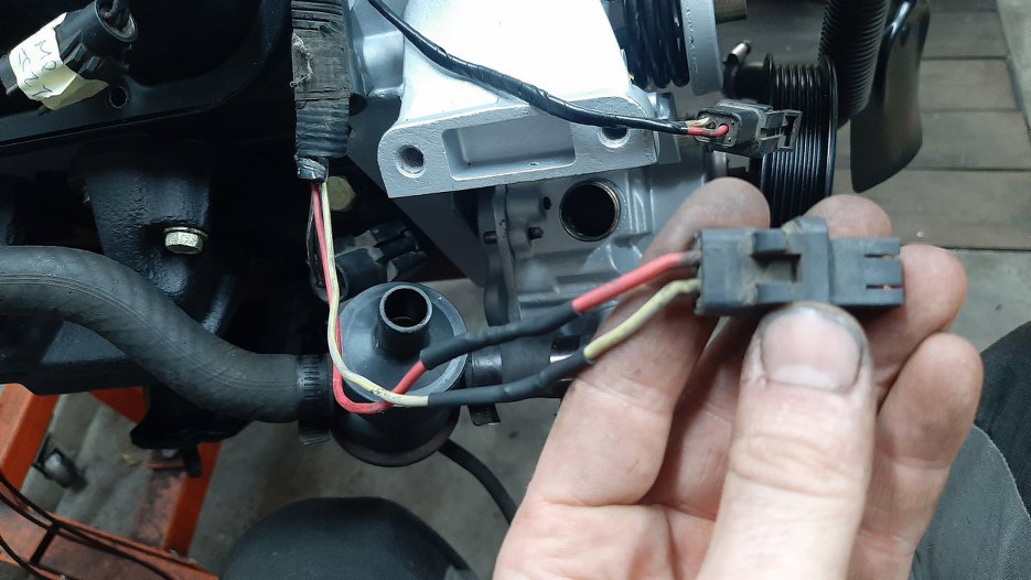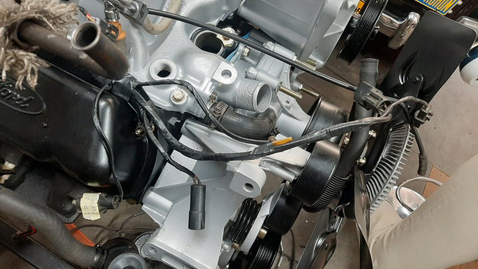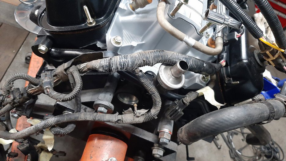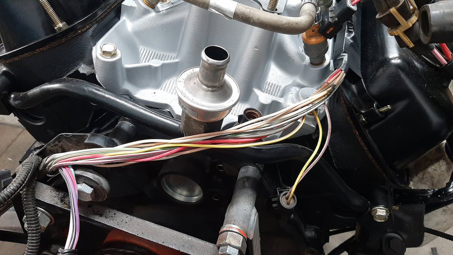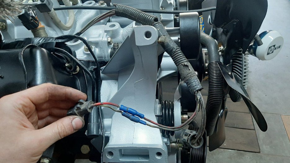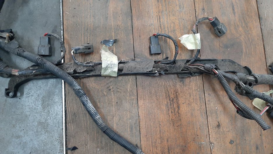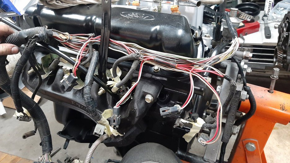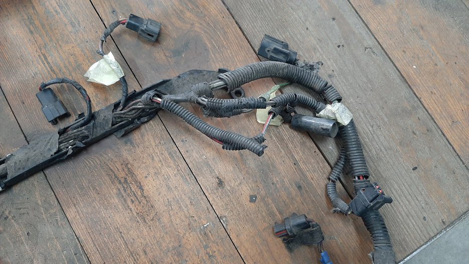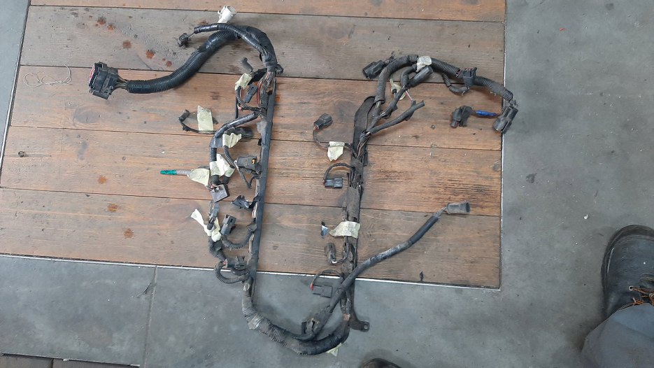Z przodu po lewej stronie silnika wiązka wychodzi na bok, żeby połączyć się z wiązką samochodu.