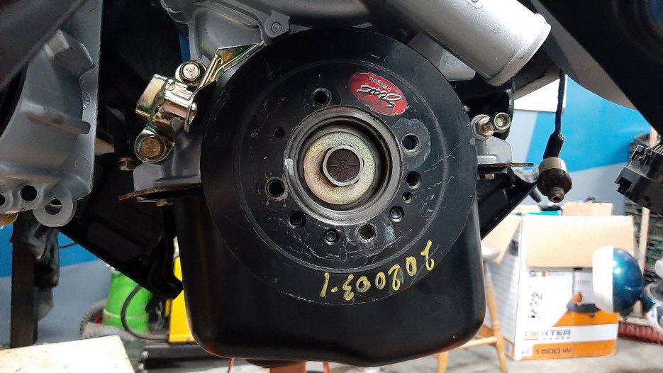 W zasadzie powinienem zrobić to wcześniej, przed przykręceniem koła do wału korbowego, ale dziwnym trafem mam drugie identyczne, więc mogę sprawdzić teraz czy koło pasuje do konwertera. Pasuje.