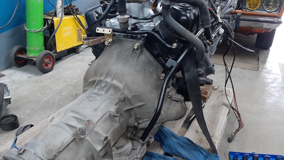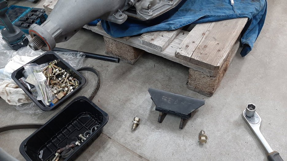 Założyłęm rurkę bagnetu oleju i uchwyt po lewej pod śruby mocujące skrzynię.