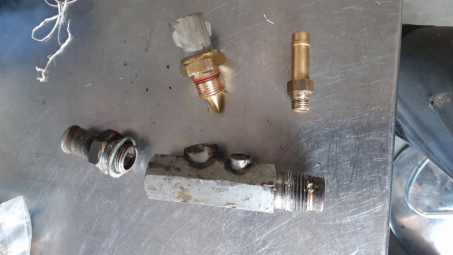 Po ocynkowaniu wkręciłem go we właściwe miejsce, używając wszędzie uszczelniacza do gwintów. Czujnik temperatury jest nowy.