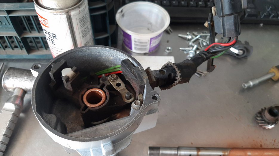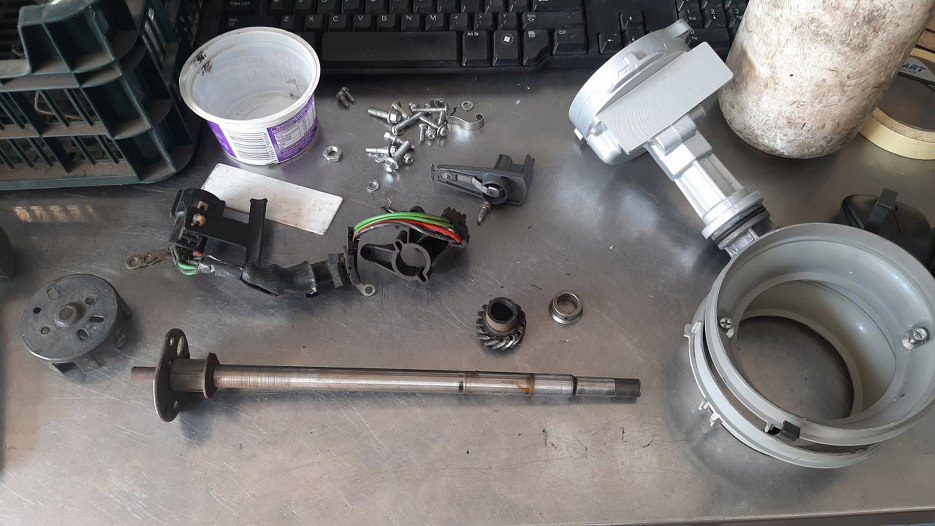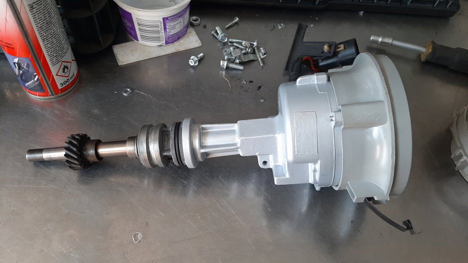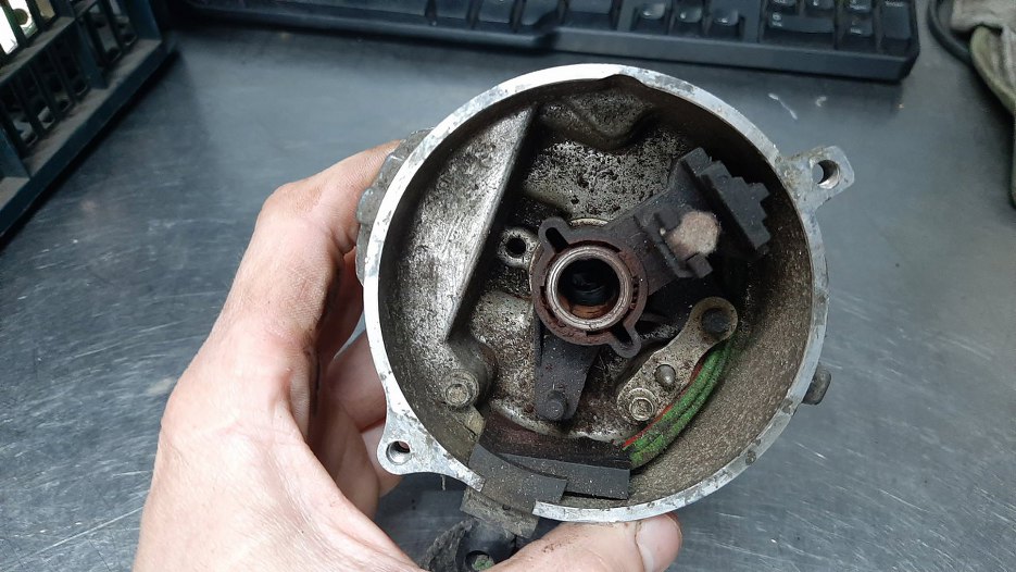 Zabrałem się też za aparat zapłonowy. Jest w dobrym stanie, nie ma luzów, przydałoby się go jedynie odświeżyć.